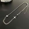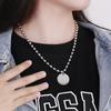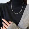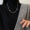 Collar con cruz de cuentas redondas de acero de titanio y costuras para mujer, accesorios sin color, estilo hip hop, moderno, estilo europeo y americano, cadena de suéter sencilla.