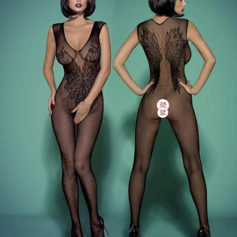 Venta al por mayor de comercio exterior perspectiva Europa y Estados Unidos sexy medias sexys tentación medias enterizas huecas jacquard ligueros ropa de red