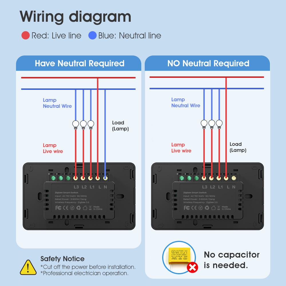 Ya sea que el cableado de su hogar tenga un cable neutro o no, nuestros interruptores inteligentes son compatibles y se pueden usar directamente sin inspección adicional ni modificación del circuito. Es especialmente adecuado para usuarios en edificios antiguos o aquellos que no están seguros de la situación del cableado, lo que hace que las actualizaciones inteligentes sean más fáciles y sin preocupaciones.