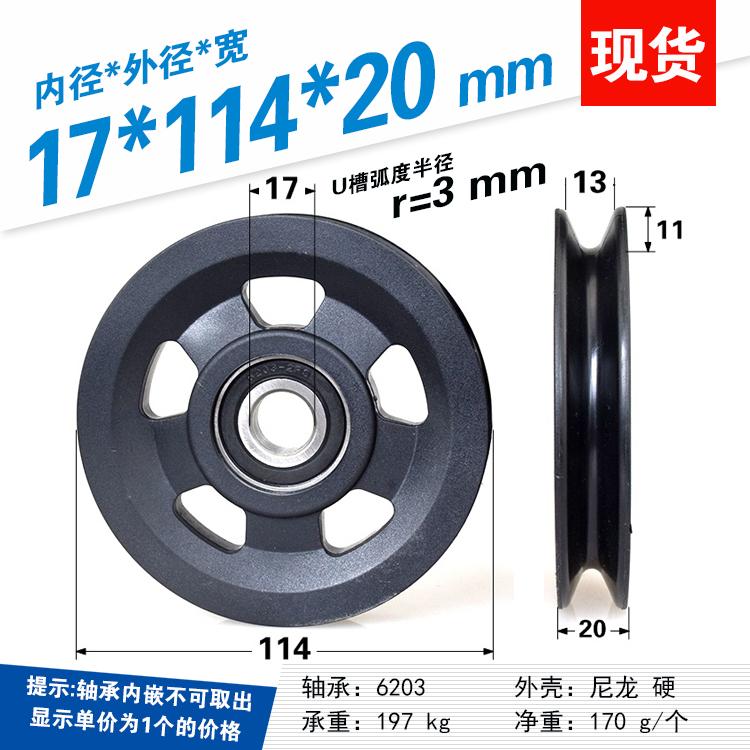 Polea de Rodamiento con Ranura en U Recubierta de Plástico 6203 Rueda de Nailon Recubierta de Goma Equipo Deportivo Cable de Acero 17*114*20mm