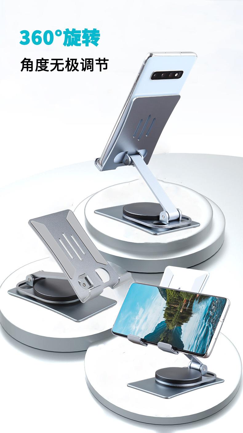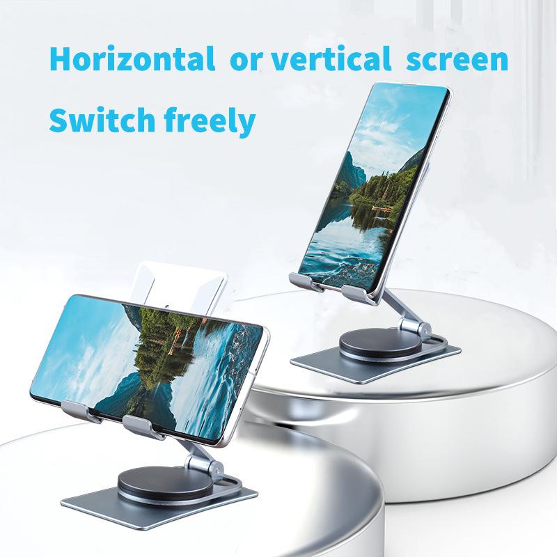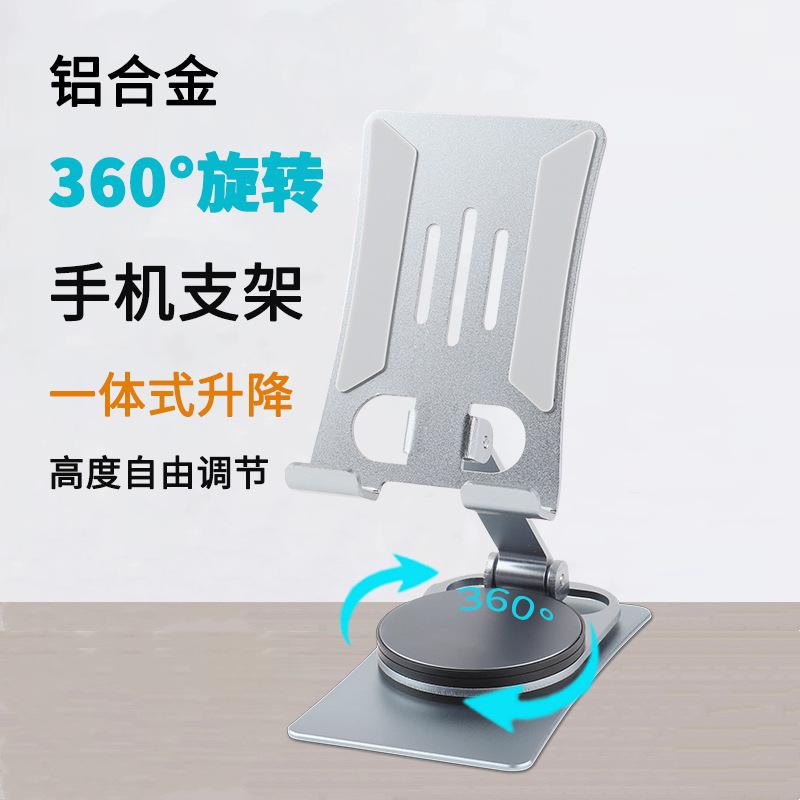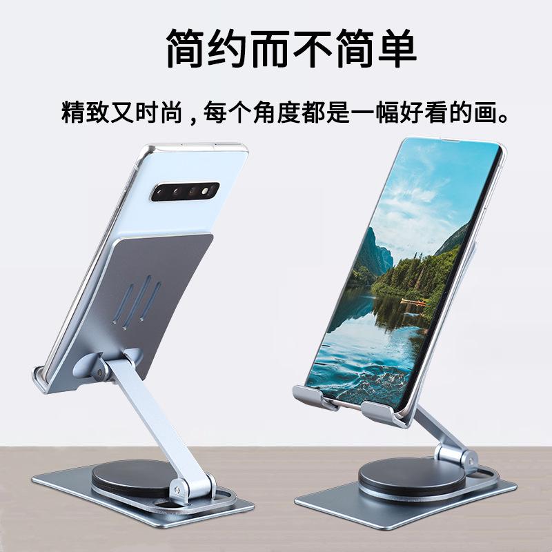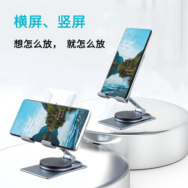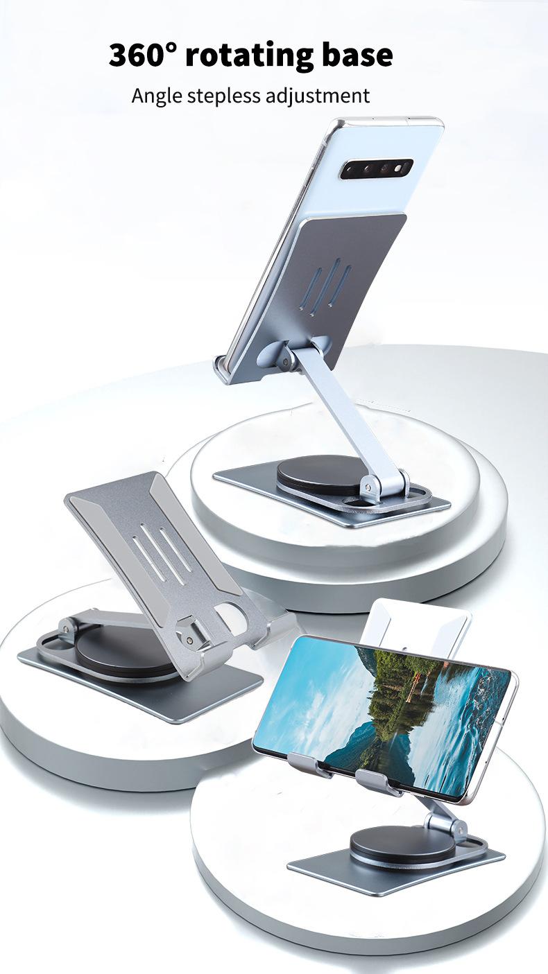 Soporte para teléfono móvil de escritorio giratorio de 360 grados, soporte plano en vivo, base multifunción para teléfono móvil de aleación de aluminio y metal.