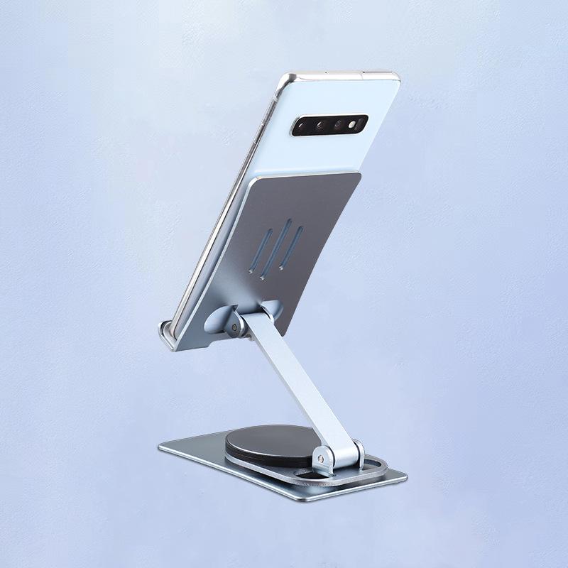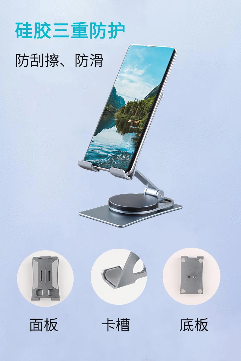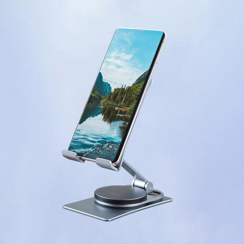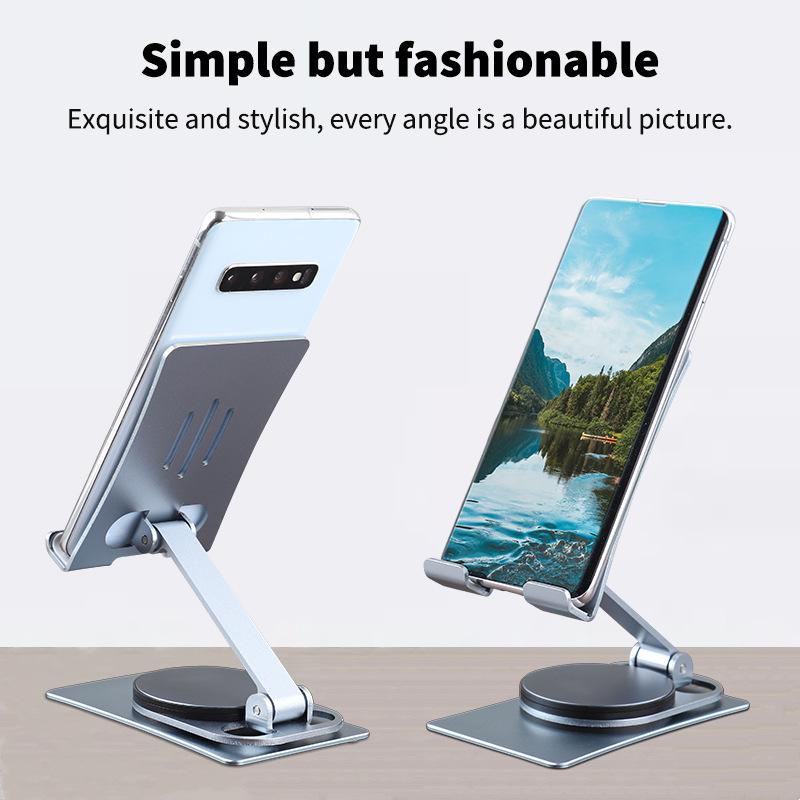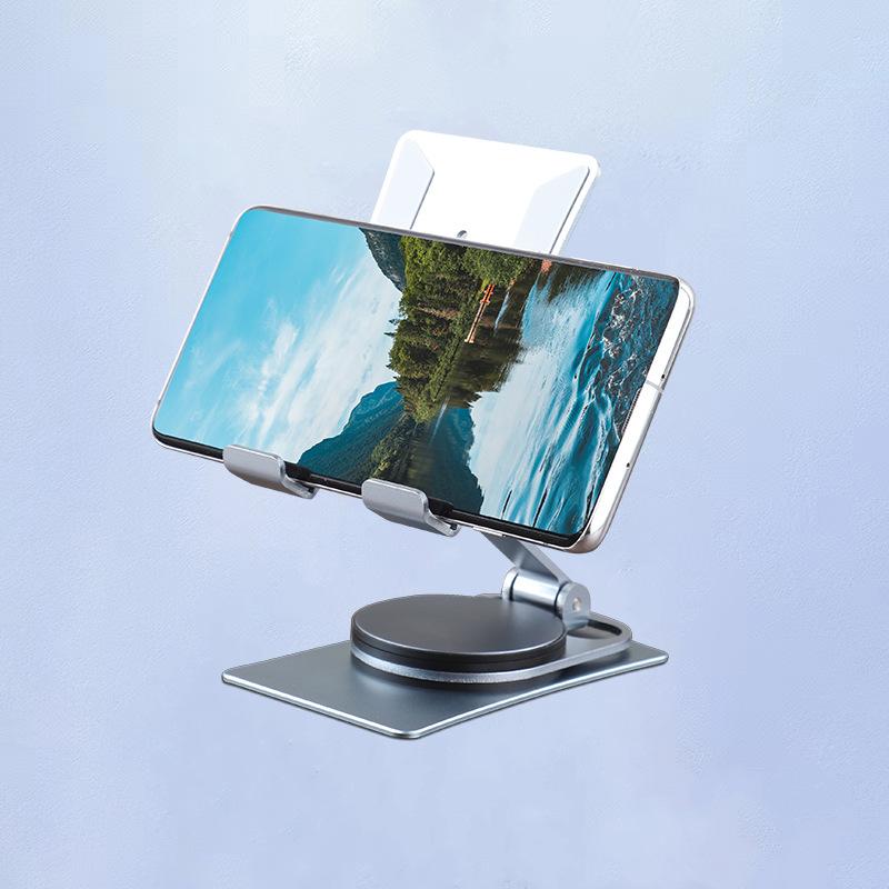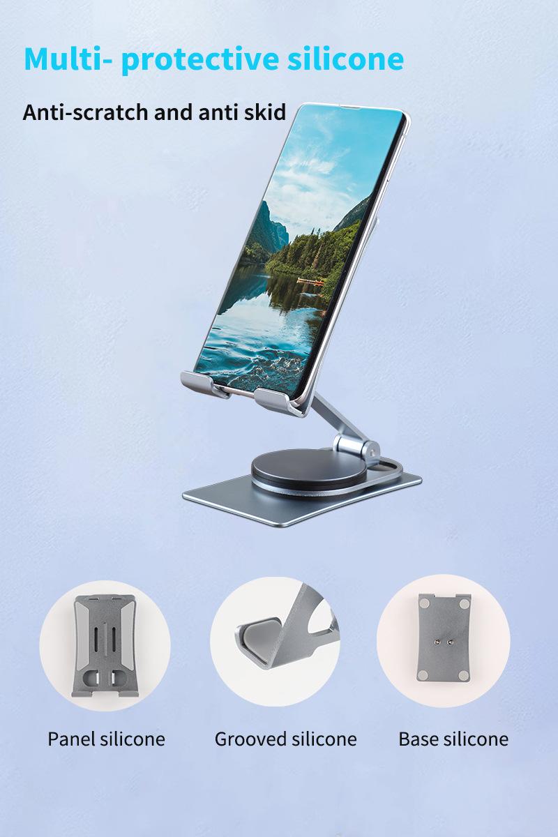 Soporte para teléfono móvil de escritorio giratorio de 360 grados, soporte plano en vivo, base multifunción para teléfono móvil de aleación de aluminio y metal.