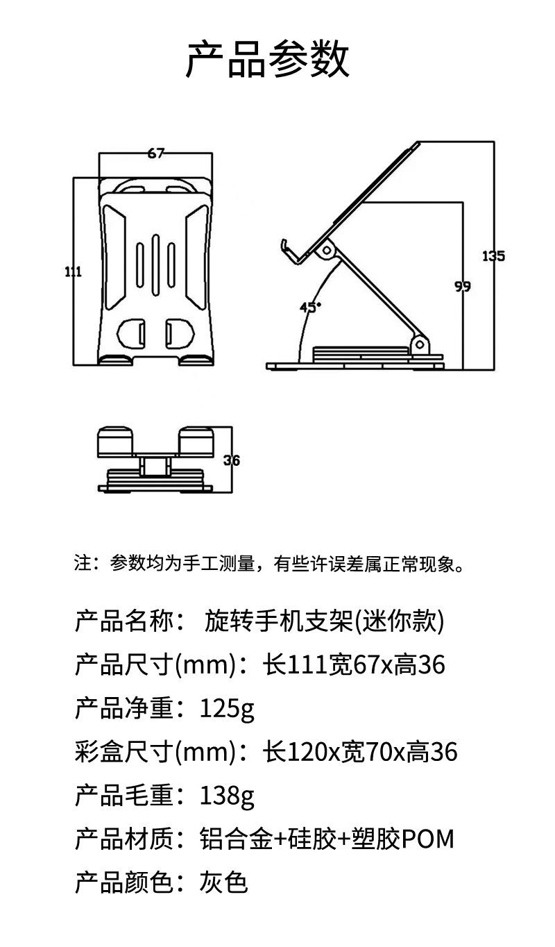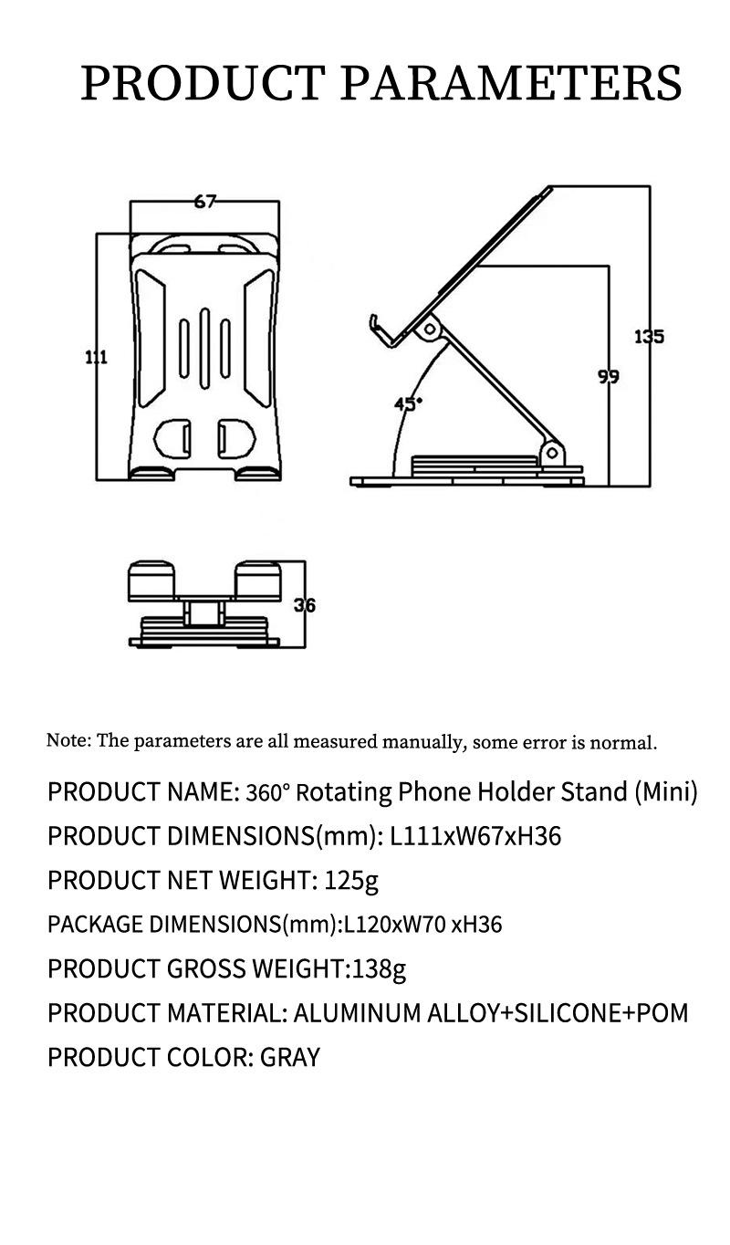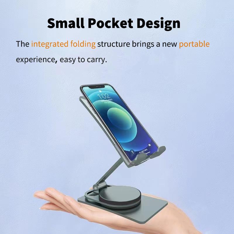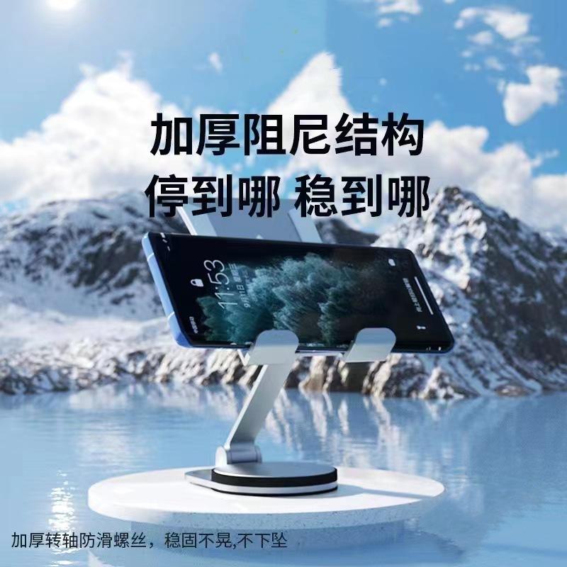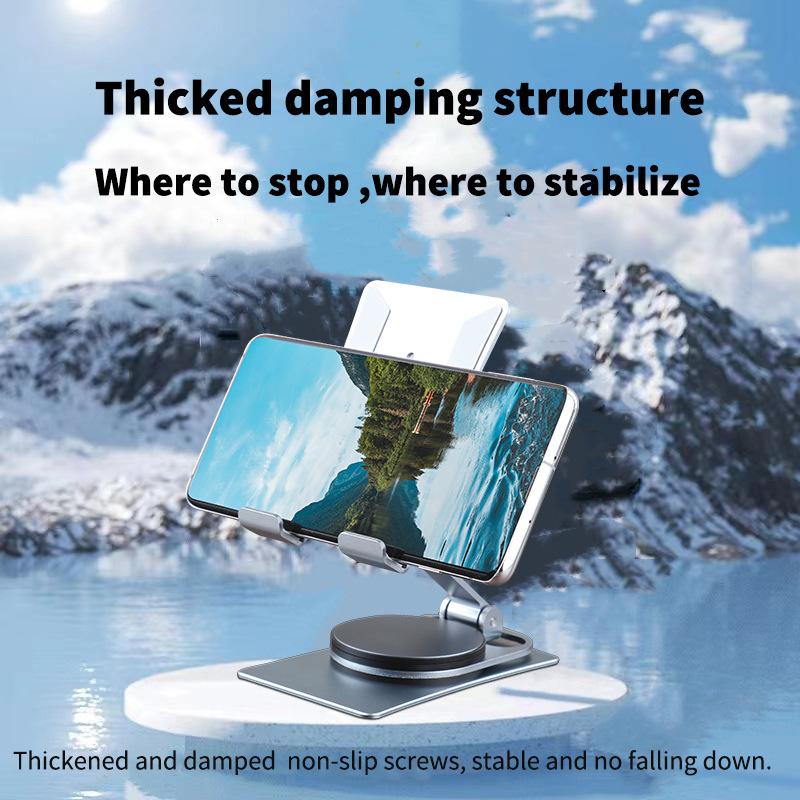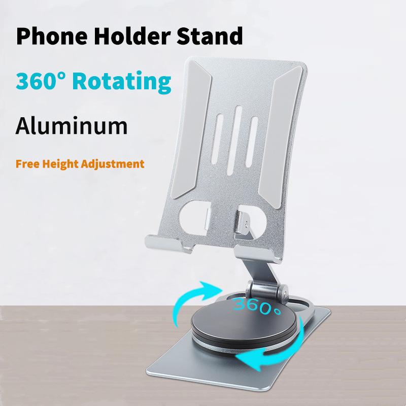 Soporte para teléfono móvil de escritorio giratorio de 360 grados, soporte plano en vivo, base multifunción para teléfono móvil de aleación de aluminio y metal.