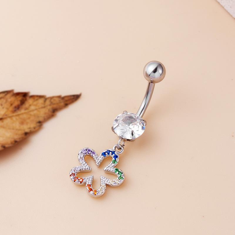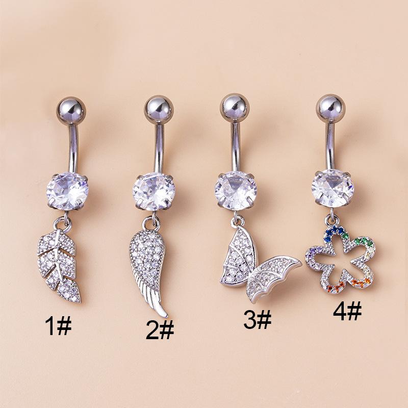 | nombre del producto | Nuevo estilo de piercing para el ombligo, joyería europea y americana con microincrustaciones de circonita, alas de hoja, mariposa, flor, colgante, hebilla de ombligo de acero inoxidable |