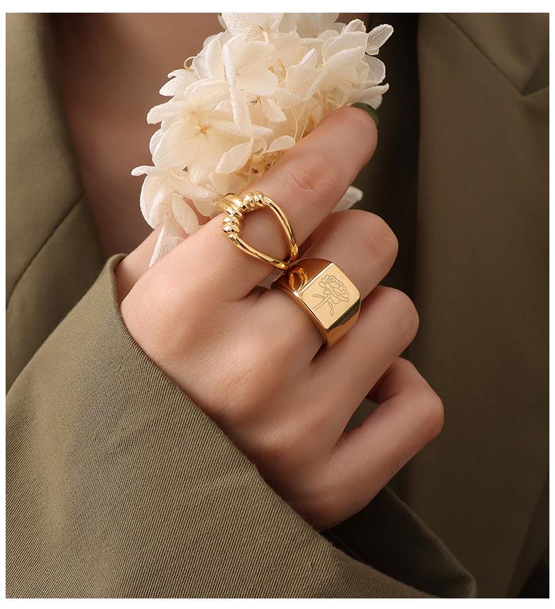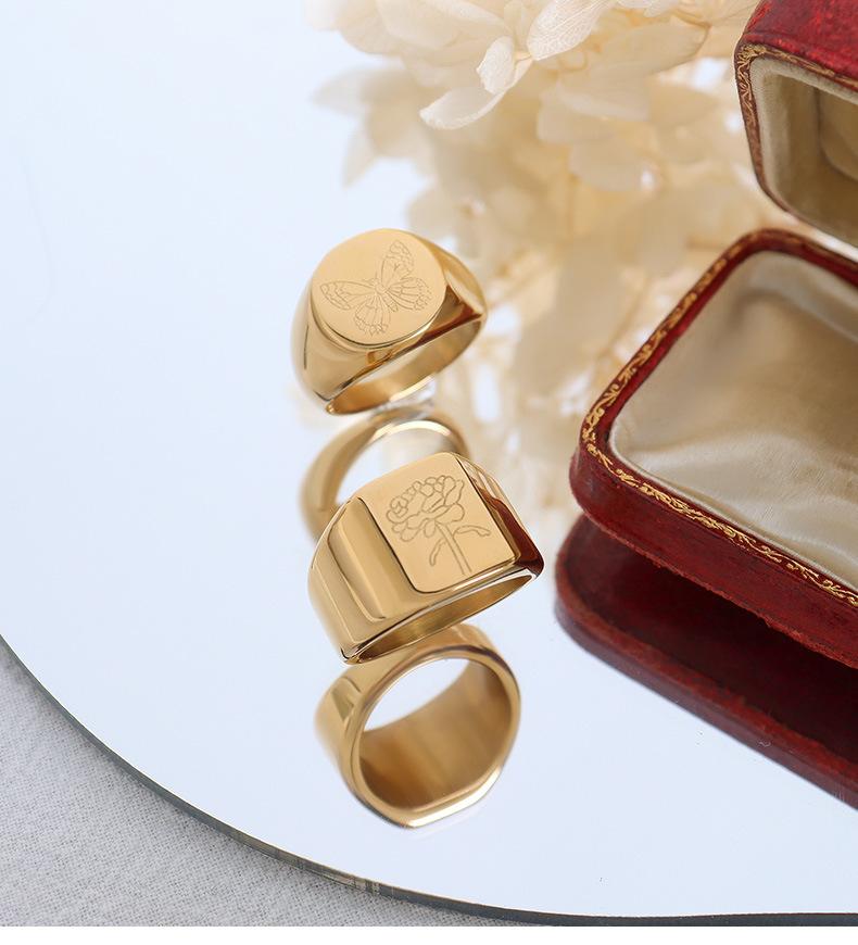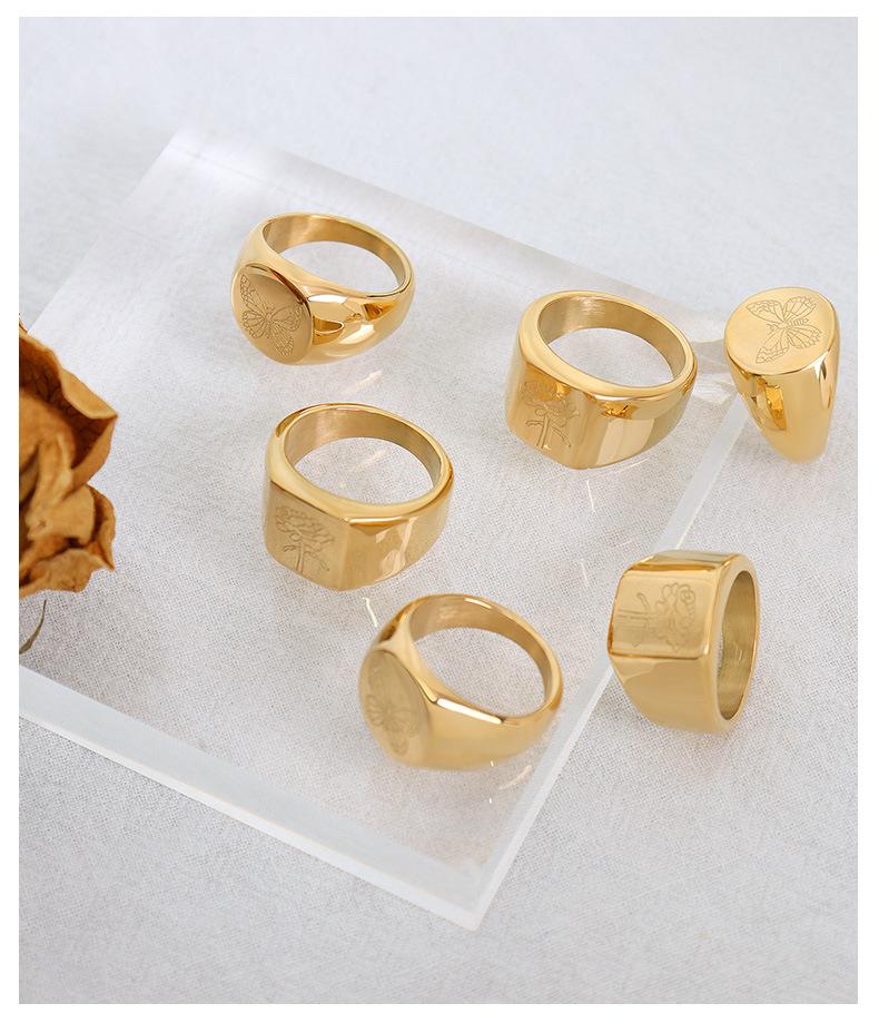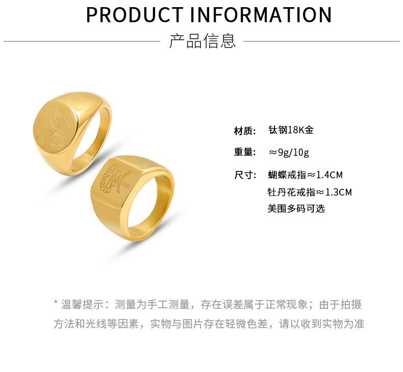 Anillo Europeo y Americano Simple Ins Estilo Frío Mariposa Flor Personalizado Geométrico Anillo Acero de Titanio Oro Real 18K A271-2