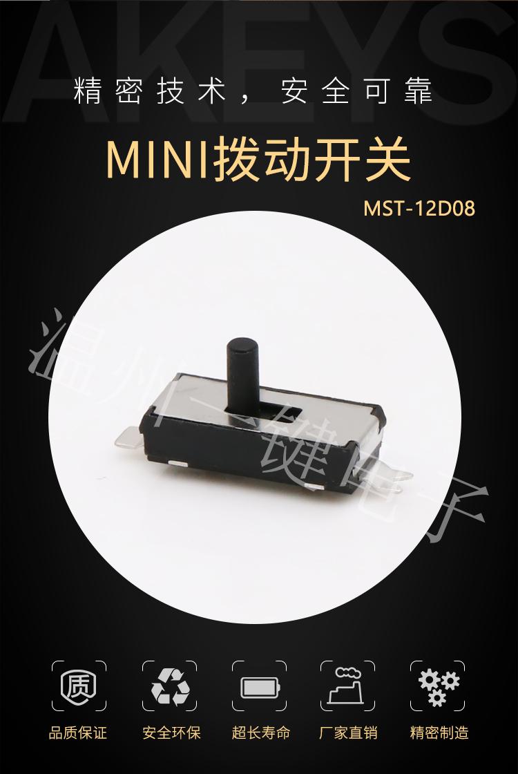 Mini interruptor de palanca MST-12D08 2 2 pies 2 posiciones manija redonda alta calidad parche vertical en forma de U G3.5