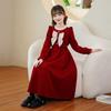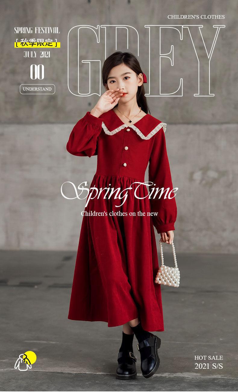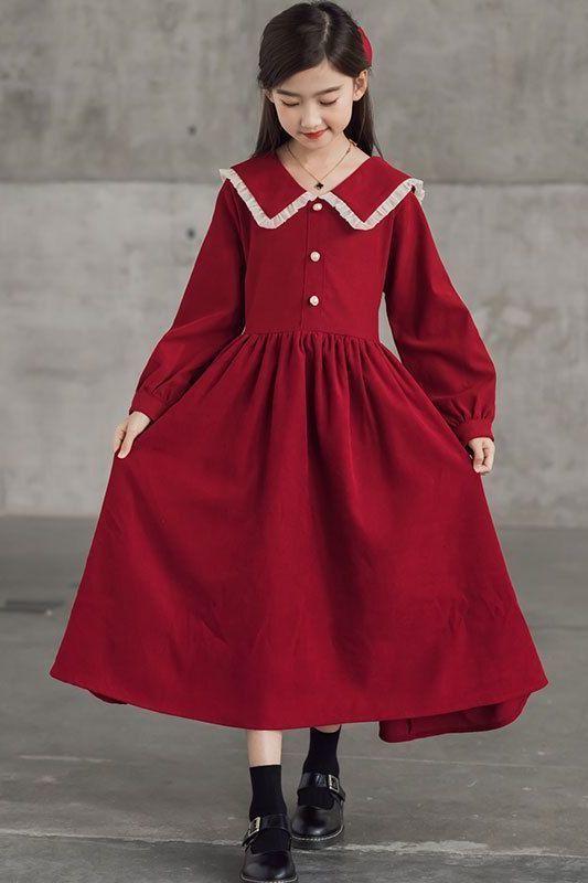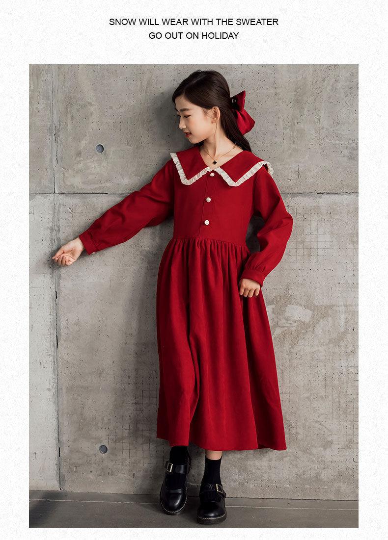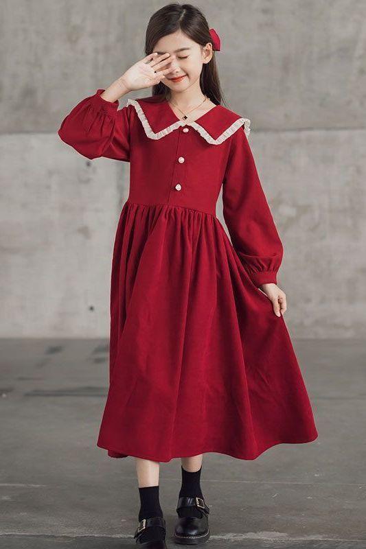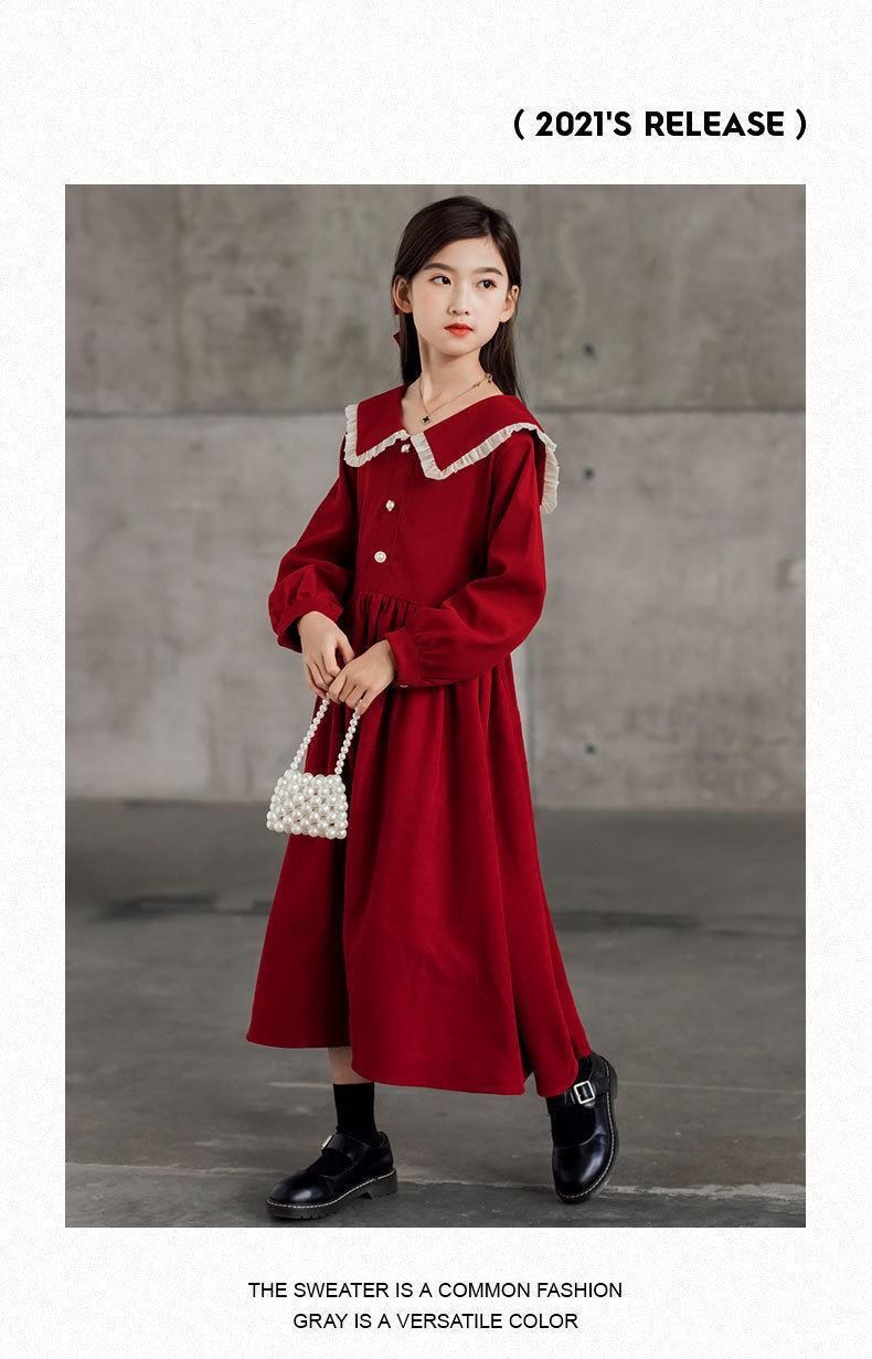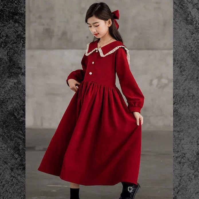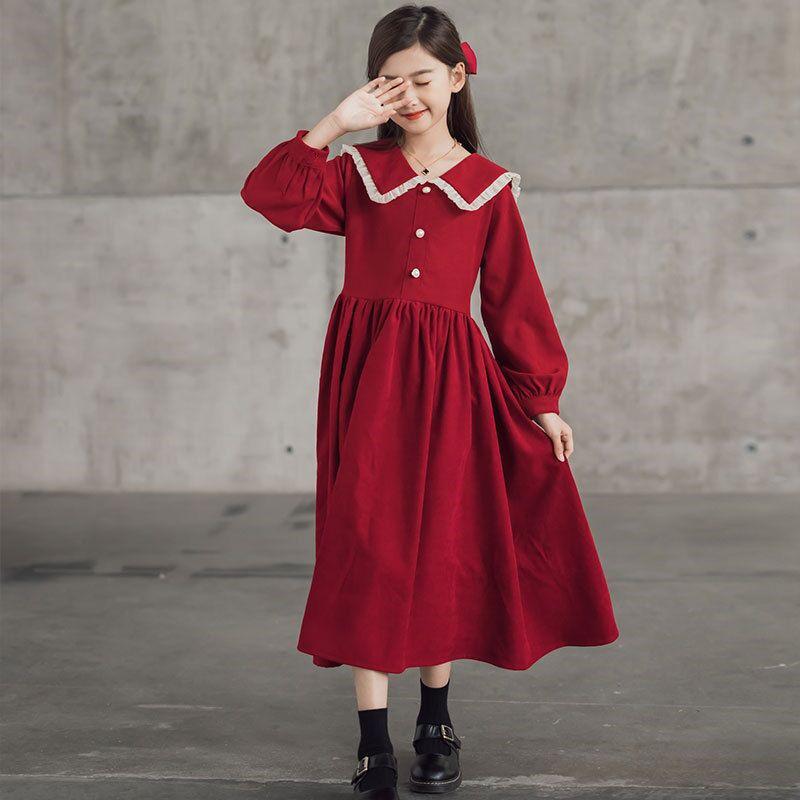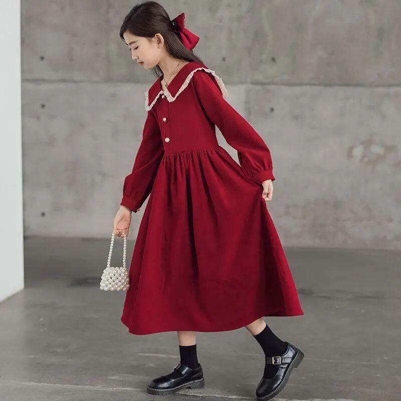 Vestido de Niña Primavera y Otoño Nuevo Vestido Largo Rojo para Niñas Mediano y Grande Niños Año Nuevo Vestido de Princesa Vestido de Moda