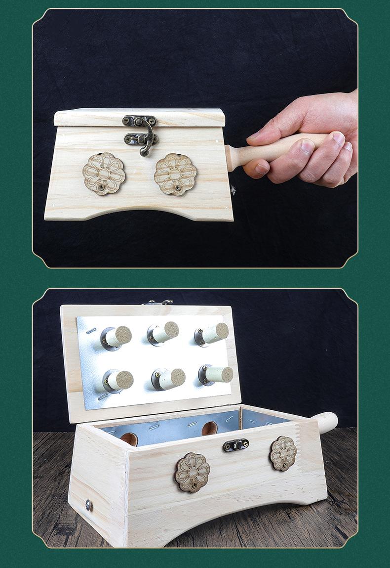 Este producto es compatible con puros de moxa de un diámetro de 1.8x2.7cm. No se puede usar con puros de moxa más gruesos. Si vuelve a encender los puros de moxa usted mismo, es común quemar el dispositivo de moxibustión. Por lo tanto, no nos hacemos responsables del dispositivo de moxibustión que se queme si los puros de moxa no se compran en nuestra tienda.