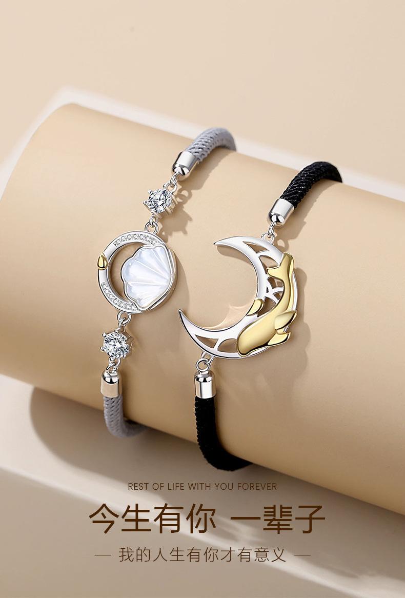Pulsera de pareja luna nueva un par de pulseras tejidas de concha para hombre y mujer para novia regalo de San Valentín