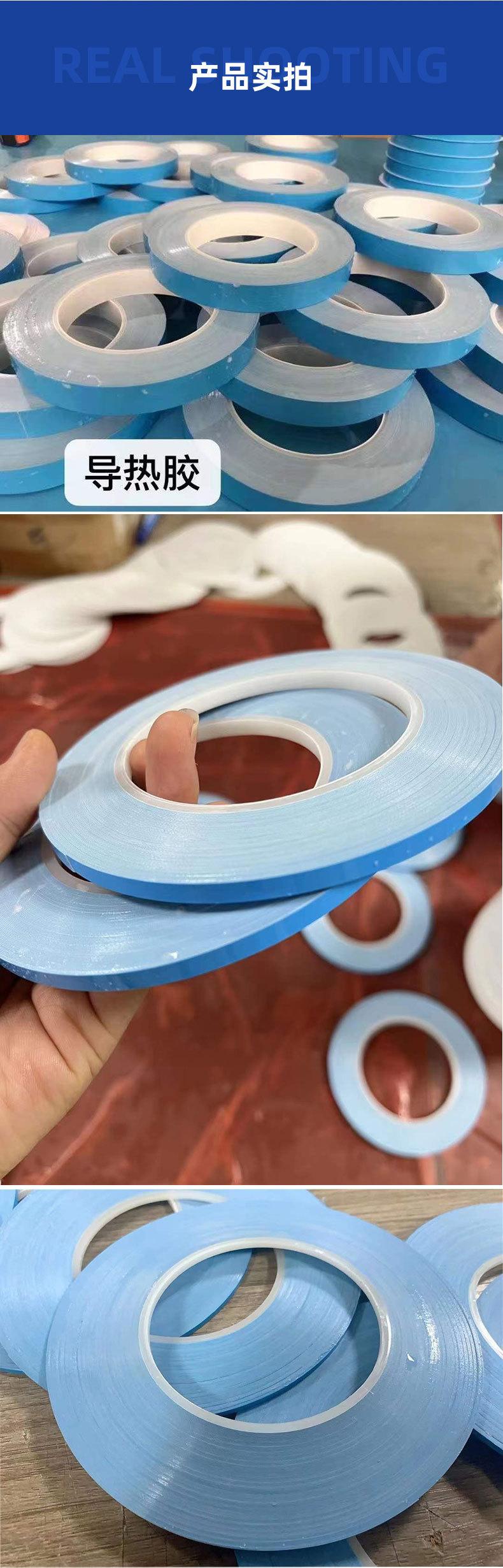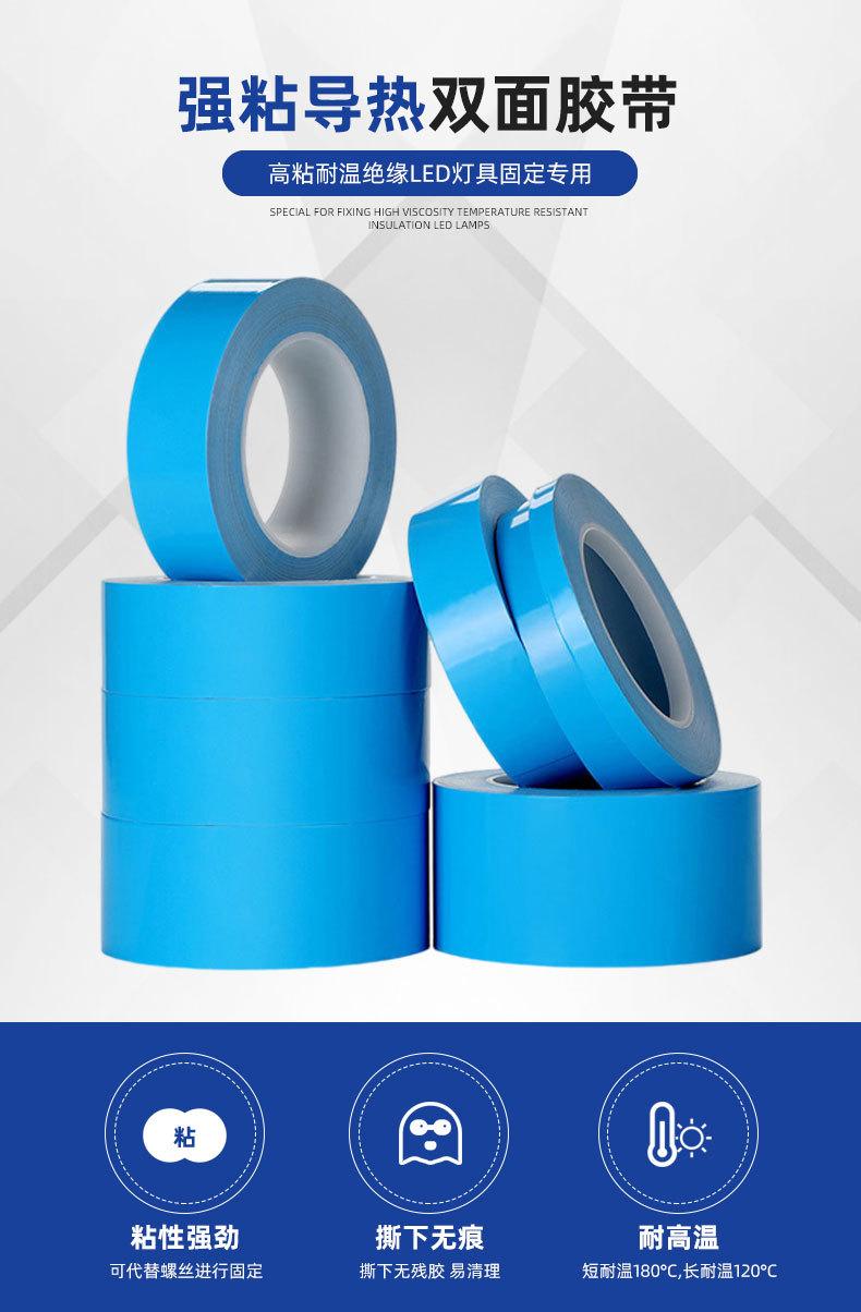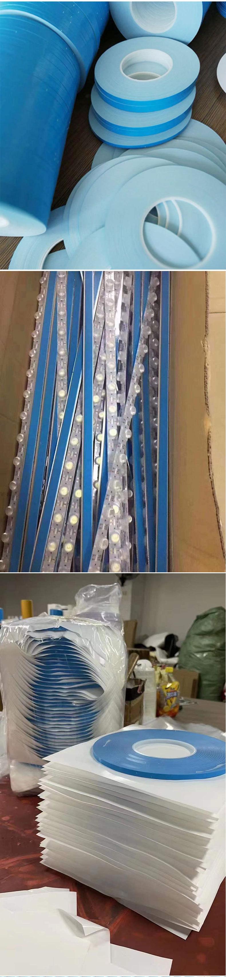 Cinta de doble cara termoconductora de fábrica con aislamiento de alta temperatura de fibra de vidrio de película azul y disipación de calor para lámparas LED. Cinta de doble cara termoconductora de fábrica.