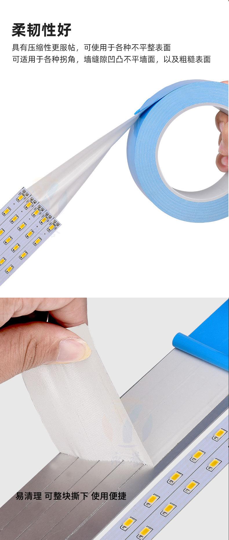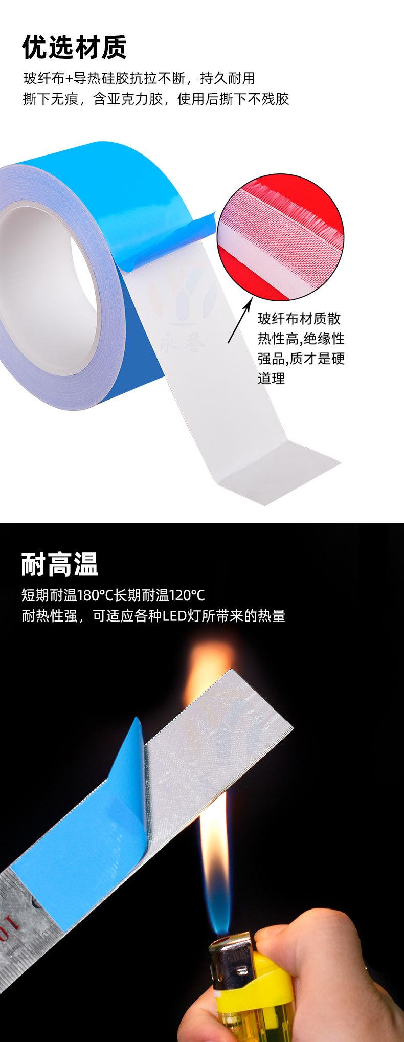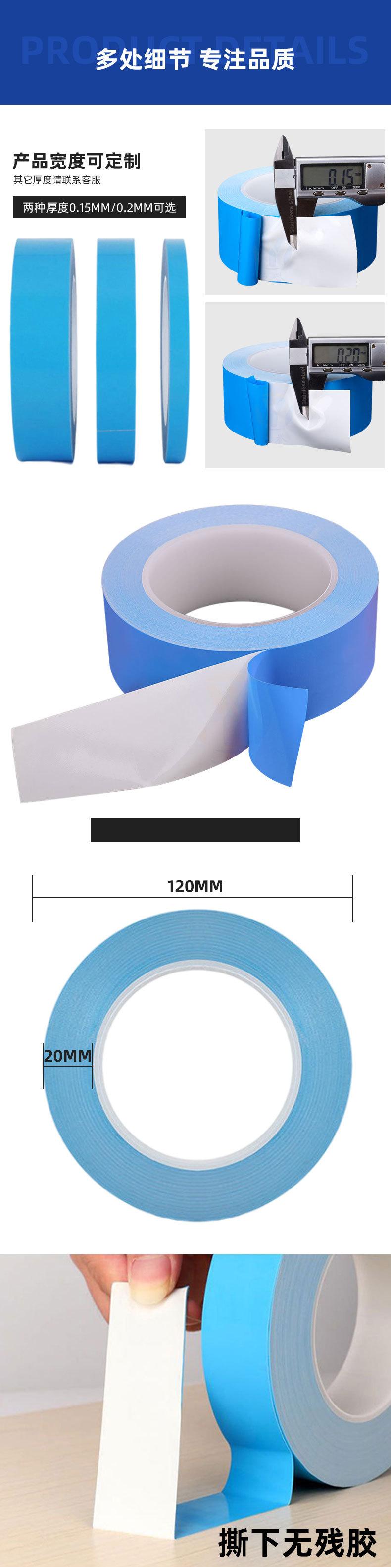 Cinta de doble cara termoconductora de fábrica con aislamiento de alta temperatura de fibra de vidrio de película azul y disipación de calor para lámparas LED. Cinta de doble cara termoconductora de fábrica.