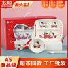 Cinco y vajilla de melamina de grado alimenticio Juego de regalo tazón para comer para bebé plato taza cuchara juego de vajilla para niños Venta al por mayor