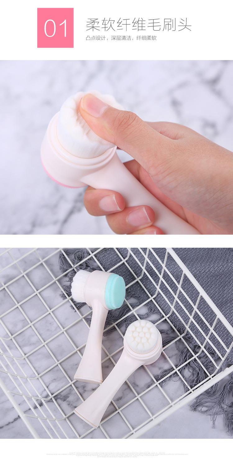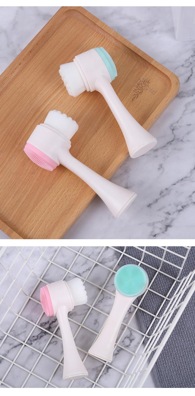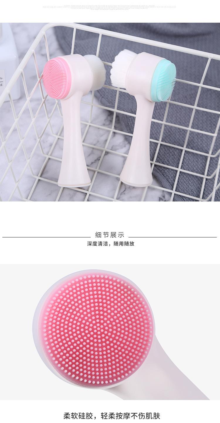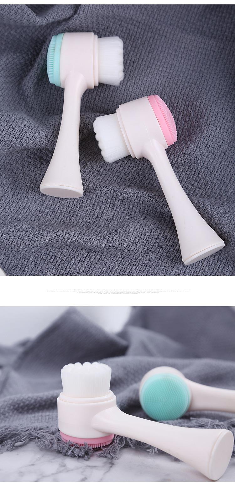 Cepillo facial de silicona de pelo suave, herramienta de limpieza de doble cara, cepillo de limpieza manual, desmaquillante, limpiador de poros faciales de puntos negros
