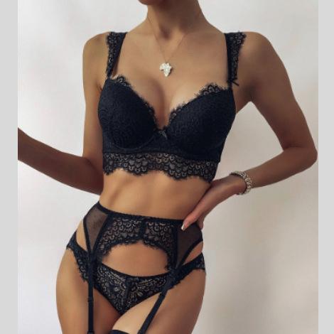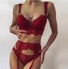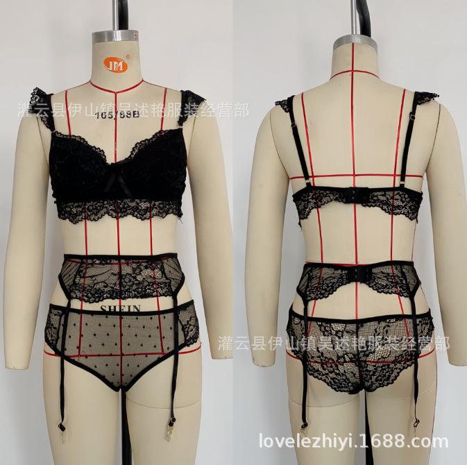 Traje de liga de lencería sexy con perspectiva de encaje de color sólido lindo para mujer de comercio exterior transfronterizo europeo y americano