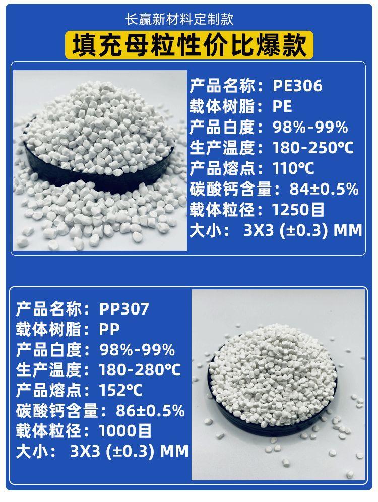 PP carrier filler (injection molding), PP carrier filler (brushed nose bridge available), PE calcium carbonate blown film Grade