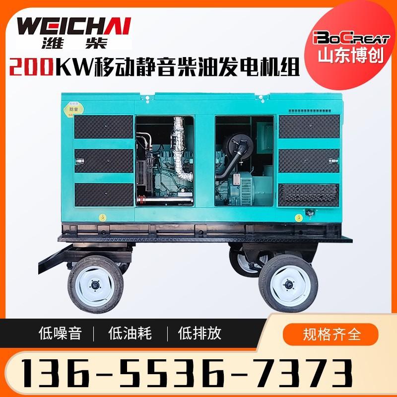 Grupo electrógeno diésel de 200 kW Bajo consumo de combustible Generador de bajo ruido Weichai 200 kW Weichai Remolque móvil Silencioso