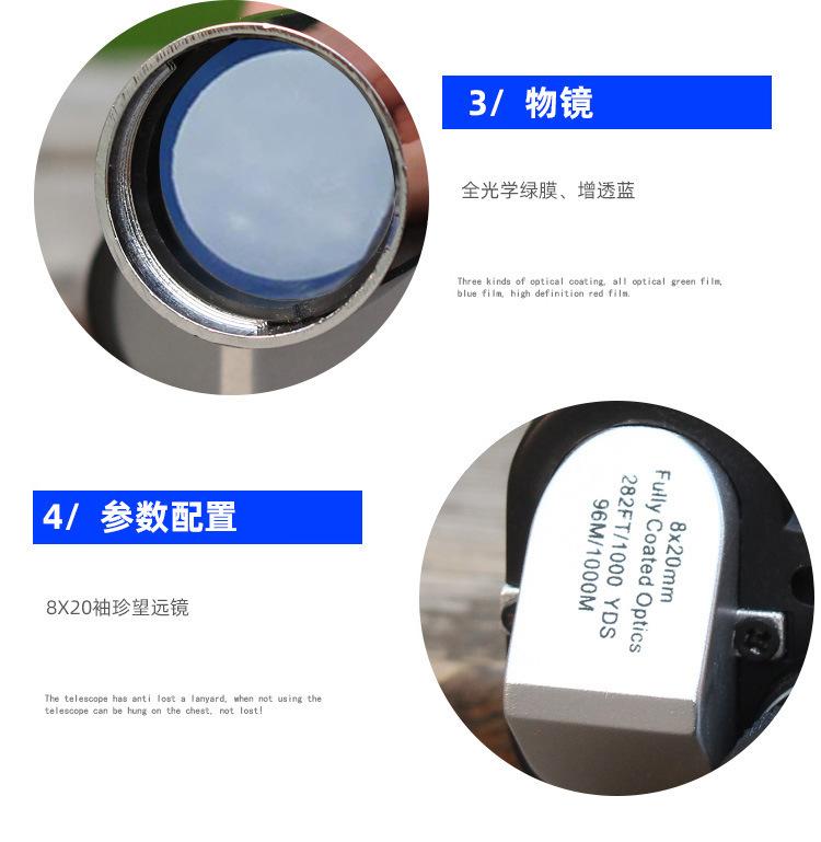 Metal 10X20 Esquina Alta Potencia Alta Definición Visión Nocturna con Poca Luz No Infrarrojo Bolsillo Mini Portátil Telescopio Monocular