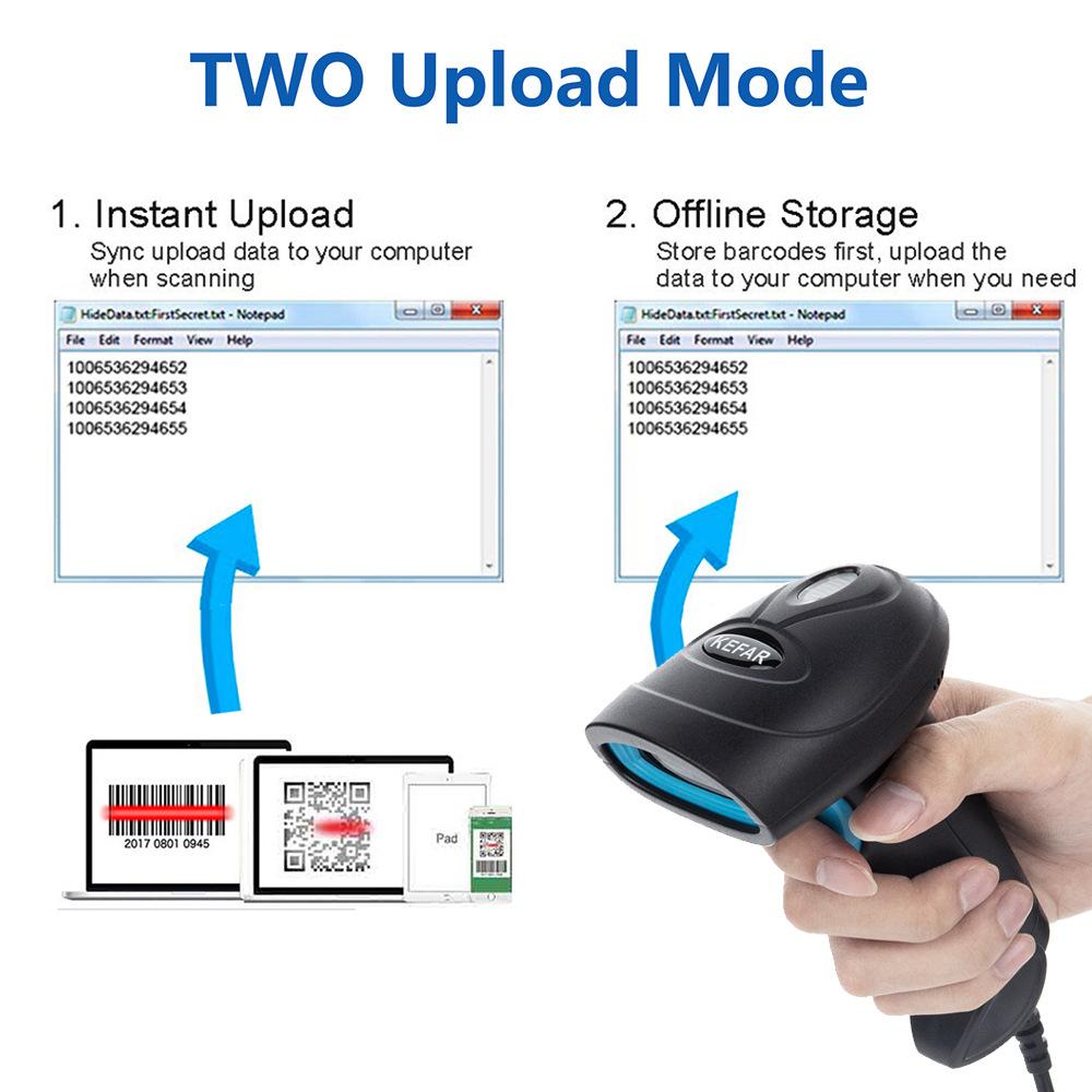 Lector de código de barras inalámbrico con cable KEFAR H4W H4B 1D/2D, lector de códigos QR con Bluetooth, PDF417, lector de código de barras portátil, compatible con teléfono, logística y tienda.