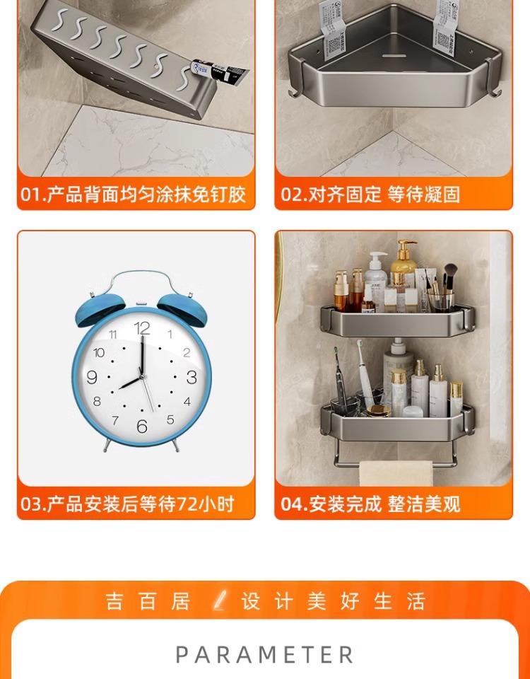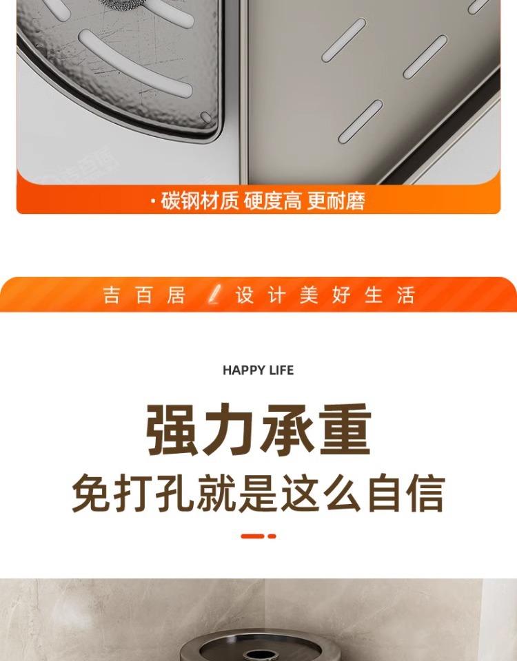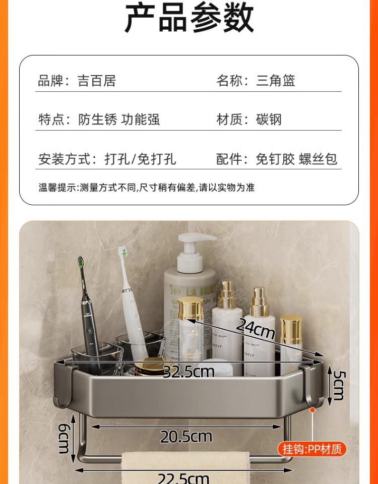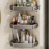 Estante de almacenamiento para inodoro de baño, sin perforaciones, para lavarse, para pared, triangular, para colgar en la pared