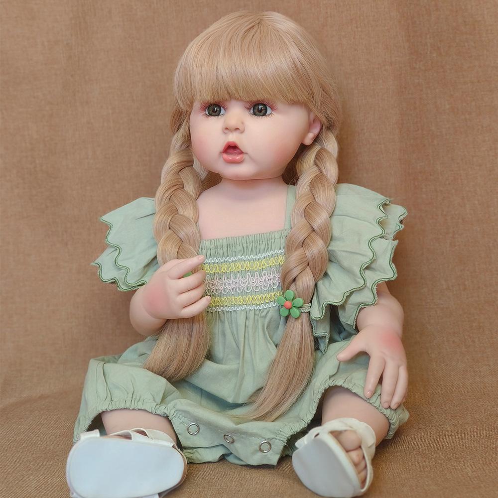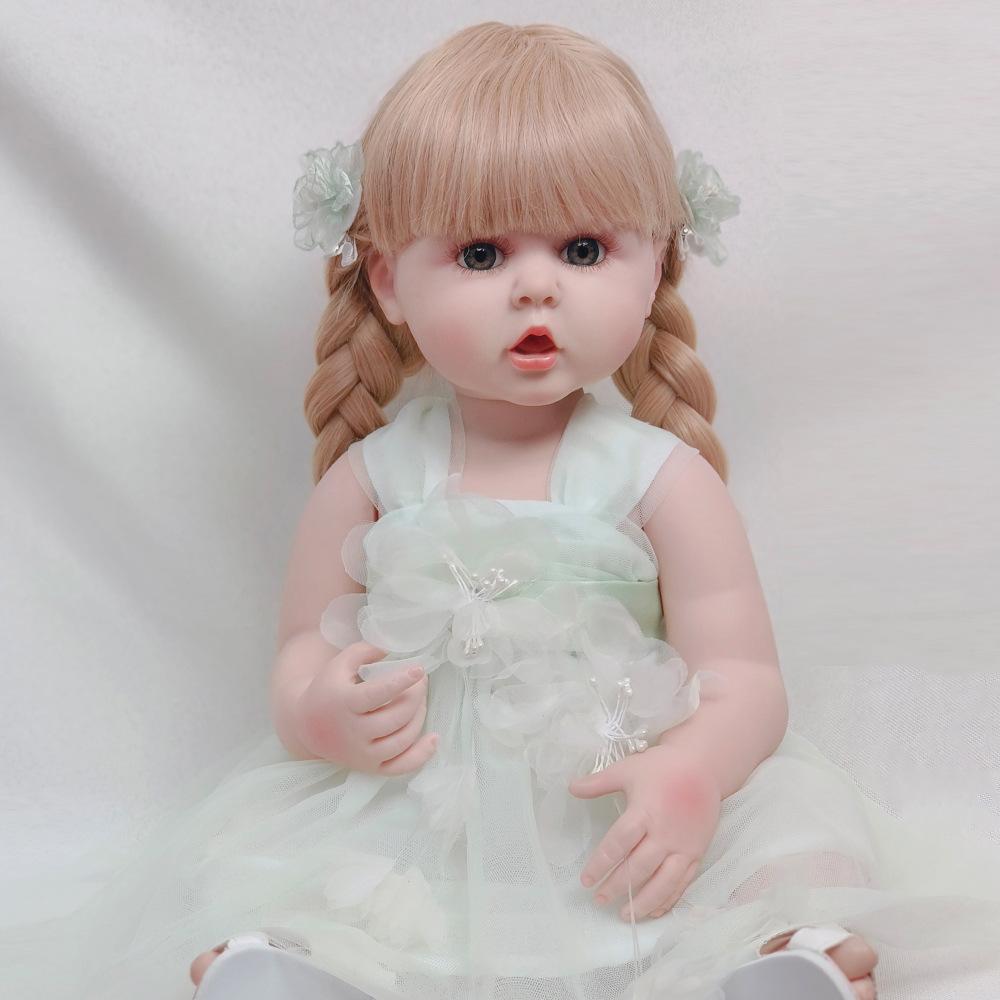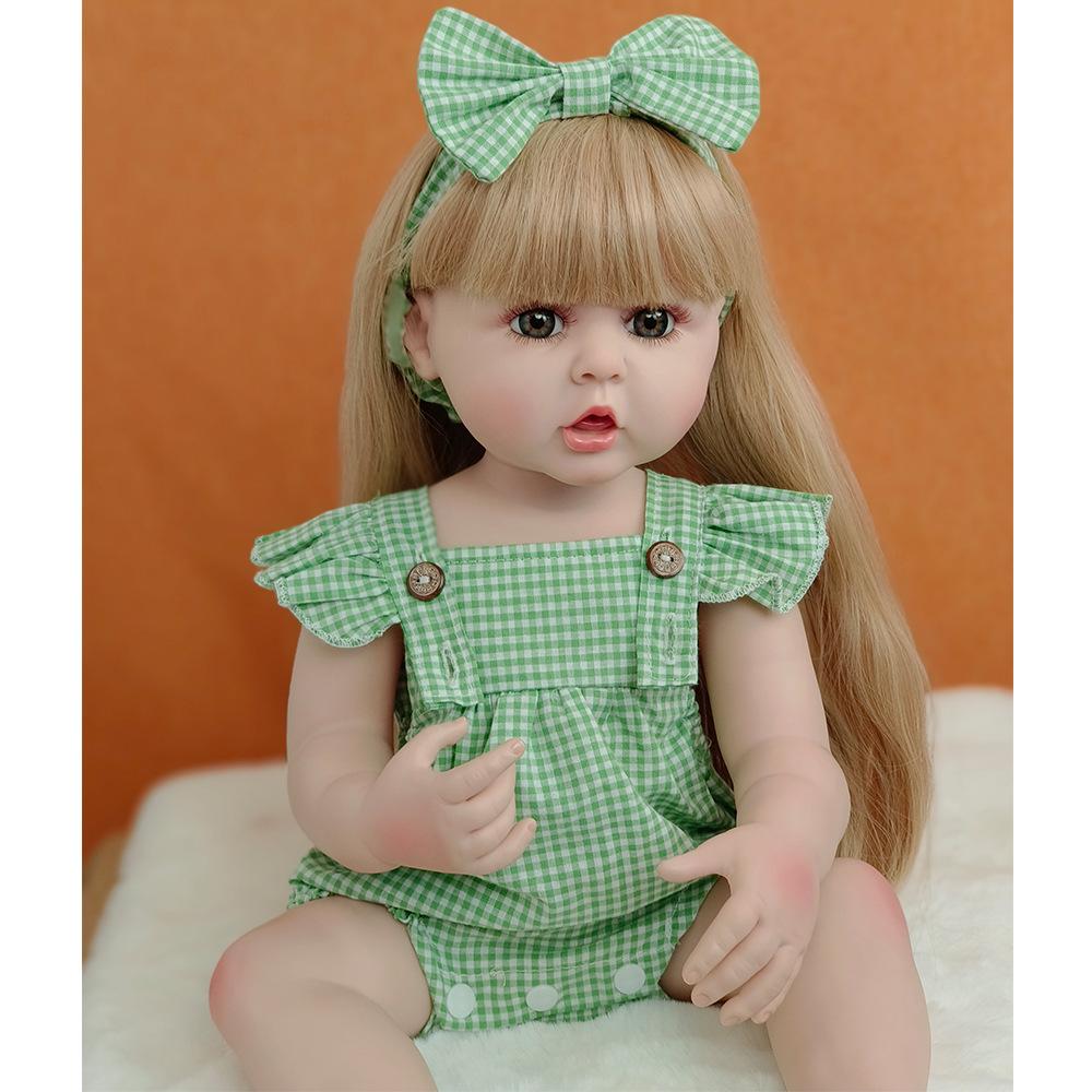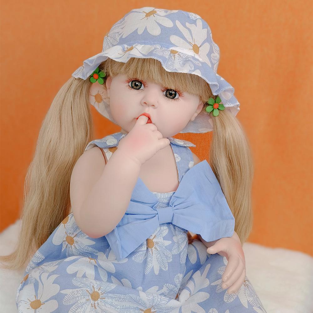 Muñeca Rebirth de vinilo suave de imitación, juguete para niños, pelo largo, dedos para comer en agua para acompañar a la muñeca.