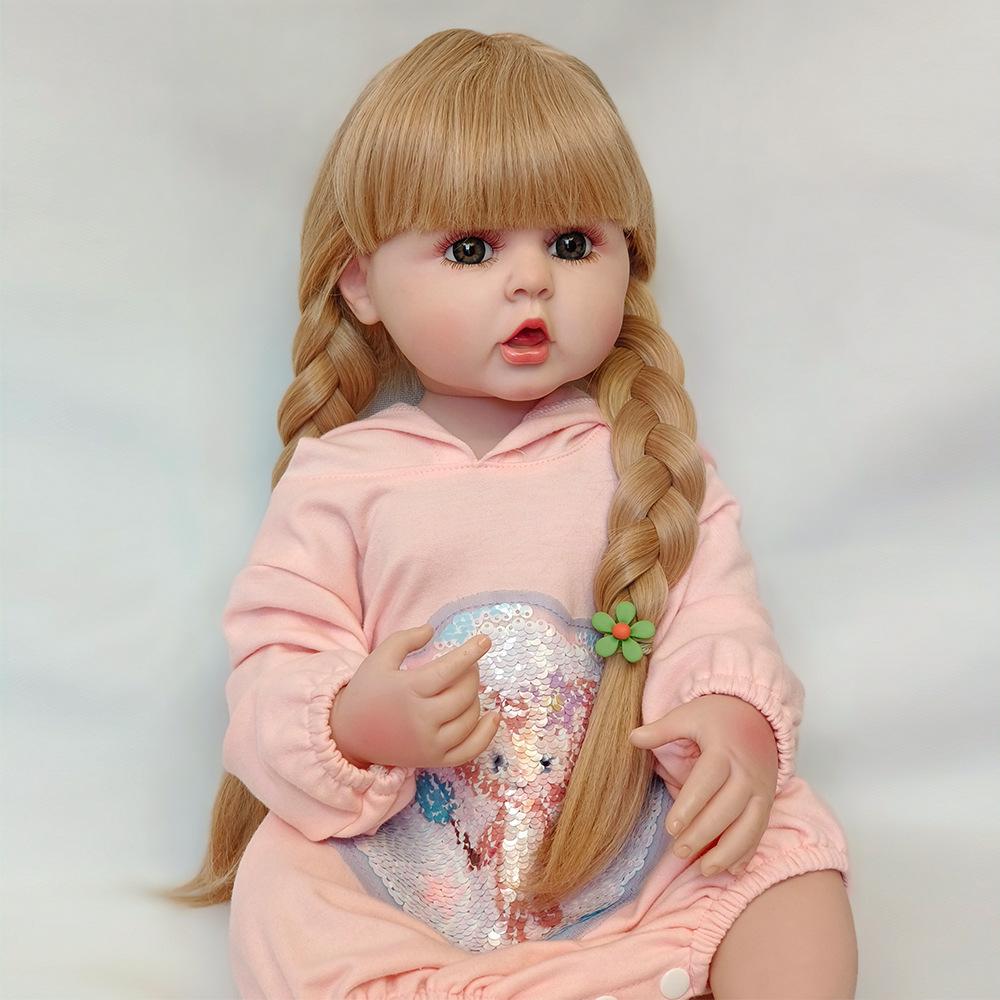 Compra Muñeca Rebirth de vinilo suave de imitación, juguete para niños, pelo largo, dedos para comer en agua para acompañar a la muñeca. al por mayor en Joom.pro
