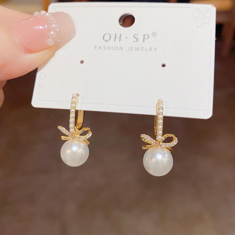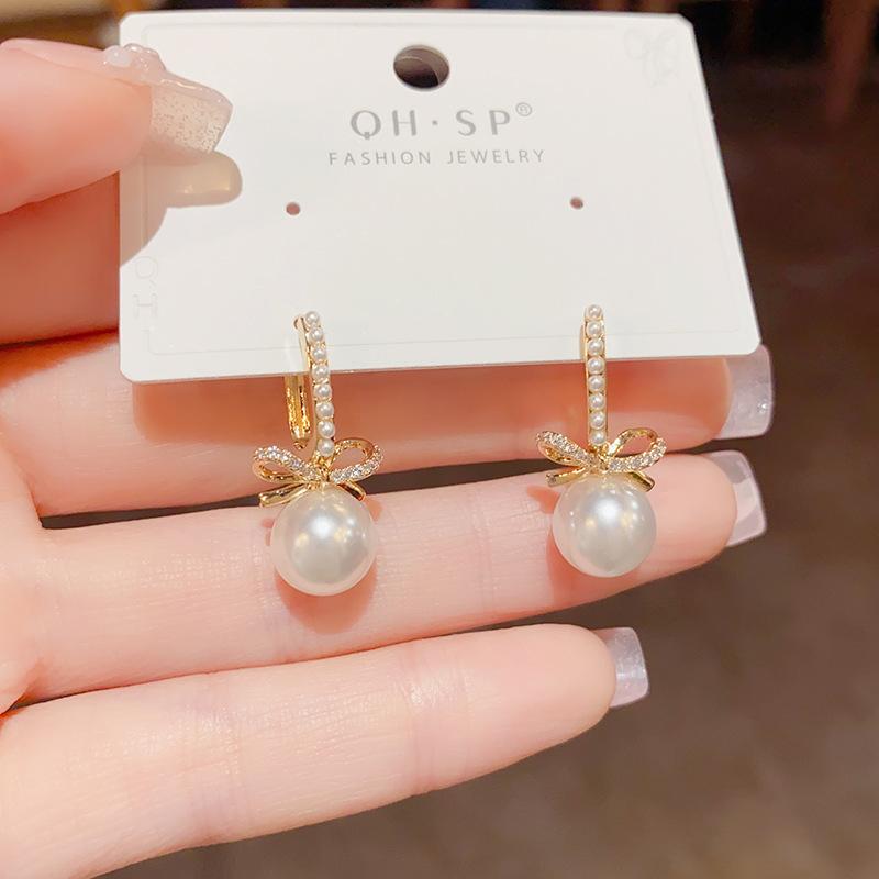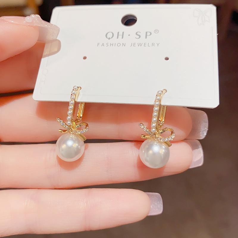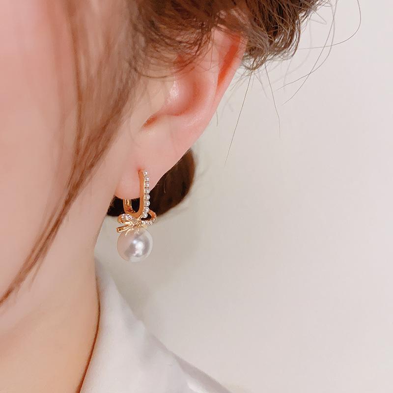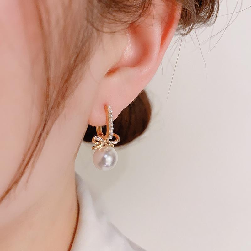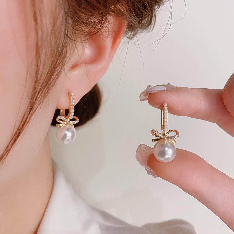 Compra Pendientes elegantes de estilo francés, sencillos, retro, con lazo de perla y hebilla para mujer, de alta gama, con diseño de nicho, a la moda y combinables. al por mayor en Joom.pro