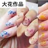 Instrucciones de uso: Puede cortar las flores pequeñas de las flores grandes antes de usar, aplicar primero pegamento para esmalte de uñas y luego aplicar pegamento de fototerapia después de secar. Use pinzas para colocar las flores pequeñas donde necesiten ser decoradas, ilumínelas, aplique una capa selladora y cúrelas. Solo seque.