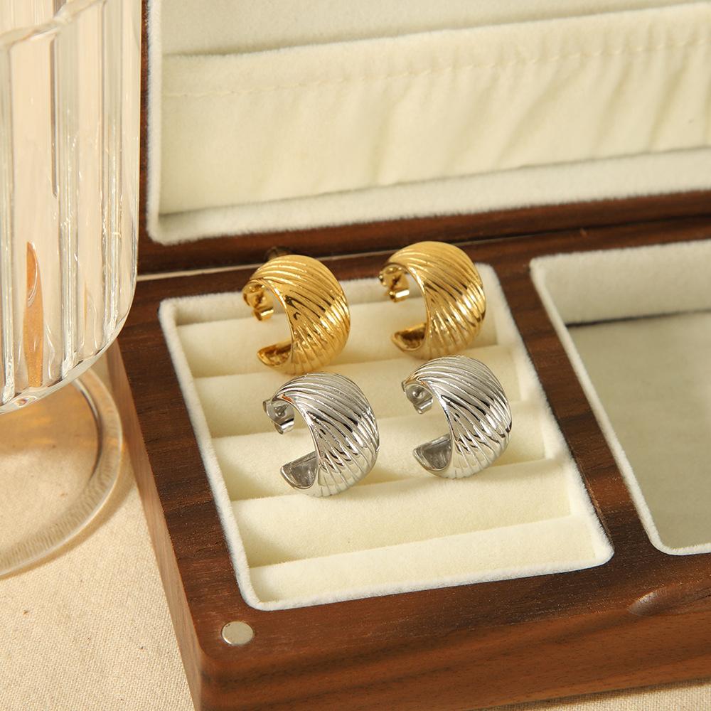 Venta caliente transfronteriza, pendientes geométricos de diseño simple europeos y americanos, pendientes de rayas tipo C de acero inoxidable en oro de 18 quilates para mujer, venta al por mayor