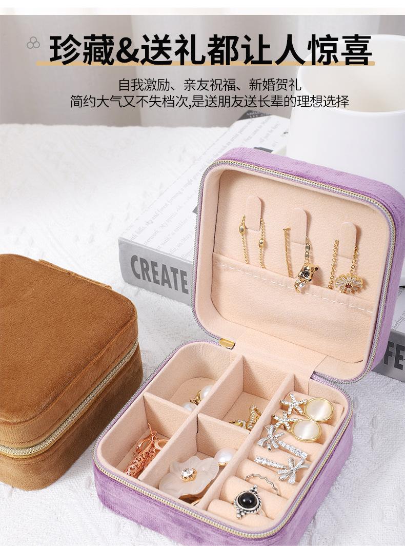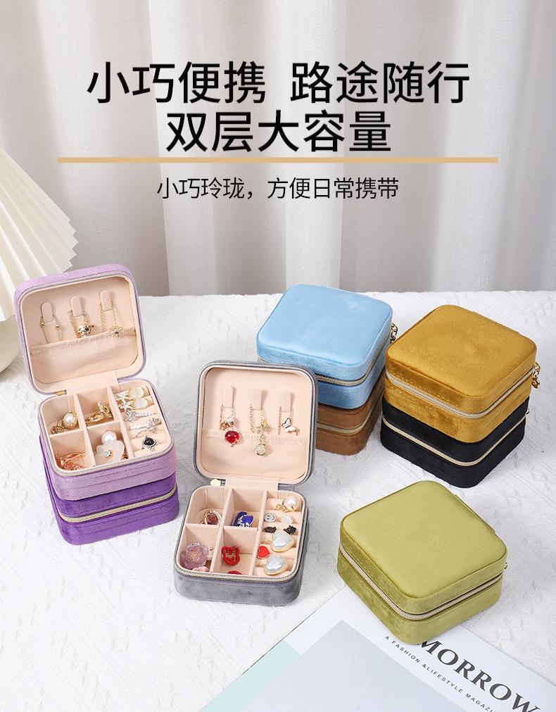Joyero transfronterizo, joyero cuadrado de franela, joyero portátil con rayas multicolor, mini joyero