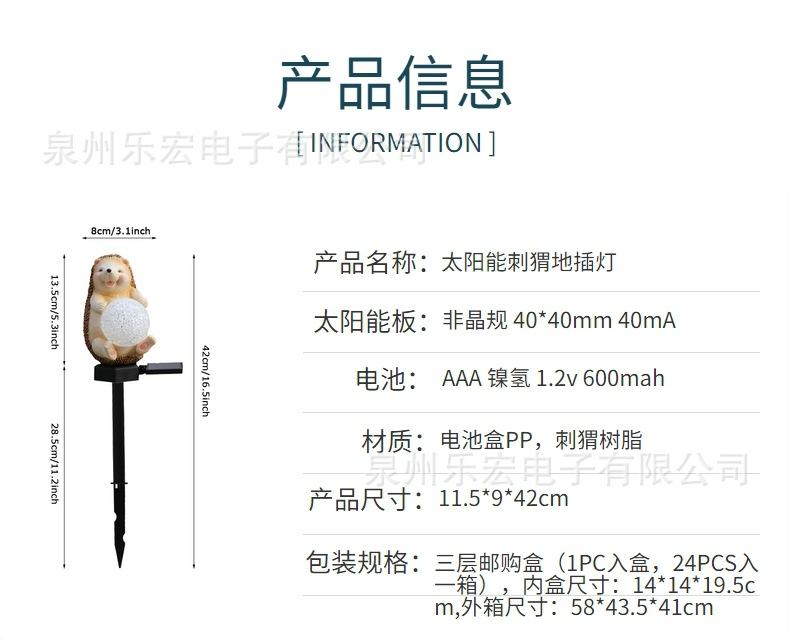Venta Caliente Transfronteriza Luz de Paisaje de Luz Colorida para Exterior Luz Solar de Dibujos Animados para Césped Atmósfera de Jardín Luz Decorativa de Erizo