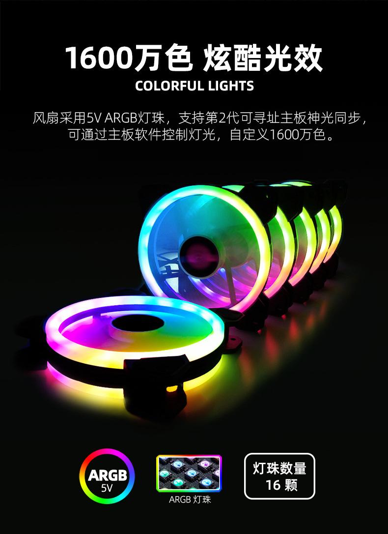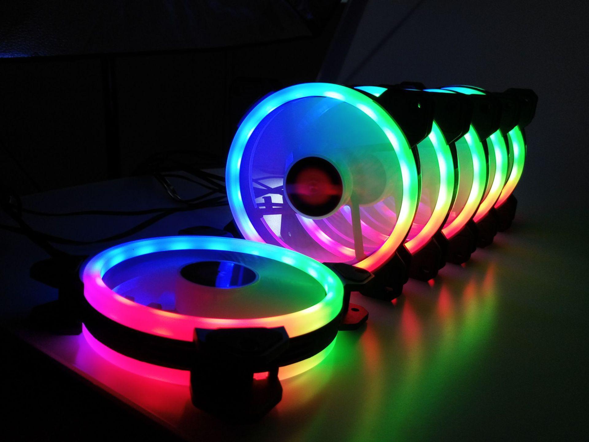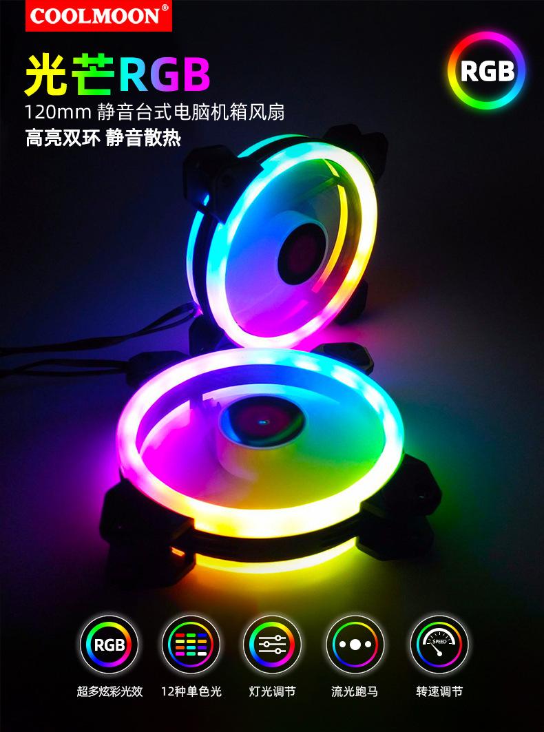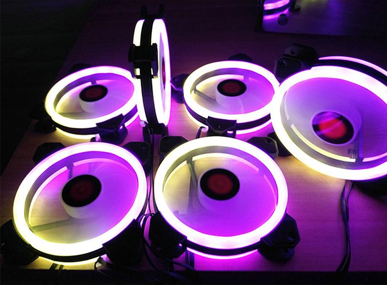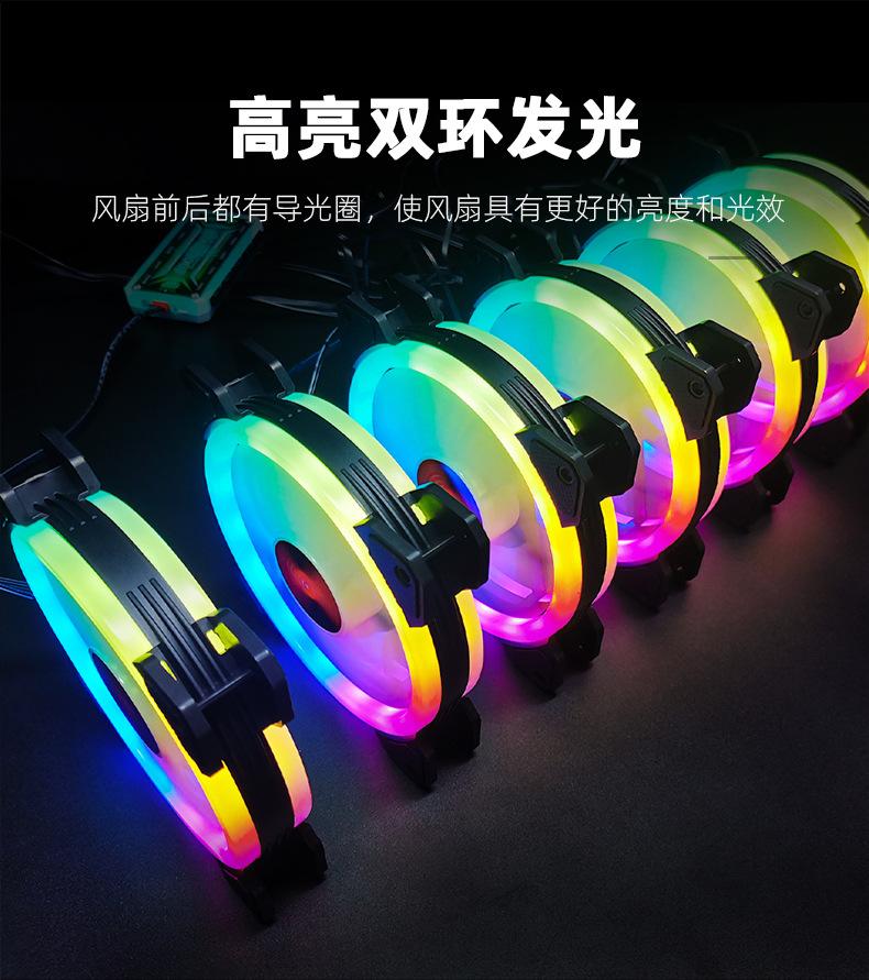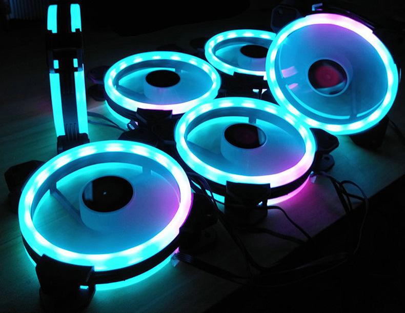 Ventilador de chasis RGB ligero de 12 cm con doble apertura Magic LED, silencioso, para computadora de escritorio, refrigeración por ventilador RGB