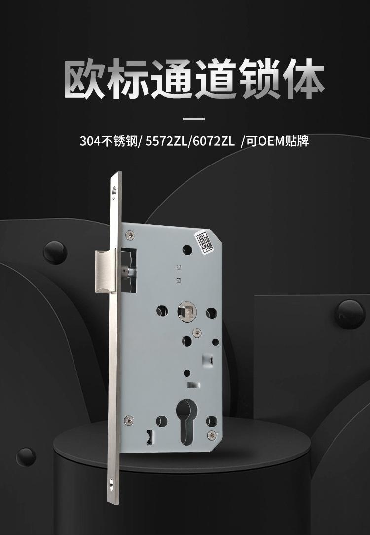 Venta al por mayor 5572 Estándar europeo Acero inoxidable Cuerpo de cerradura de embutir Cuerpo de cerradura para pasillo de evacuación Puerta de paso de incendios Cuerpo de cerradura de un solo pestillo oblicuo