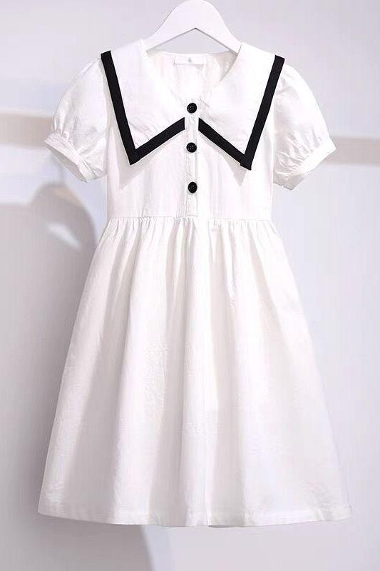 Vestido de Niña Verano Nuevo Estilo Vestido de Princesa Celebridad de Internet para Niños Verano Estilo Preppy Medio y Grande Falda de Niños Sección Delgada