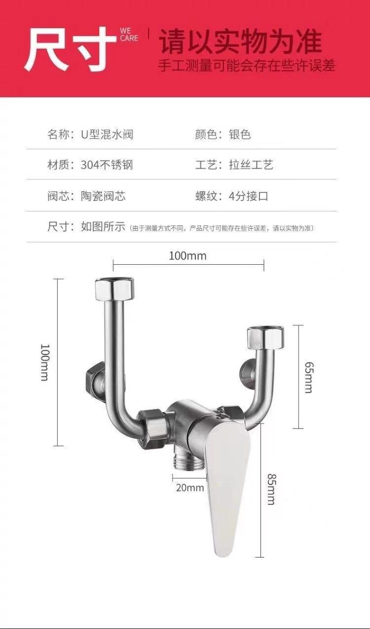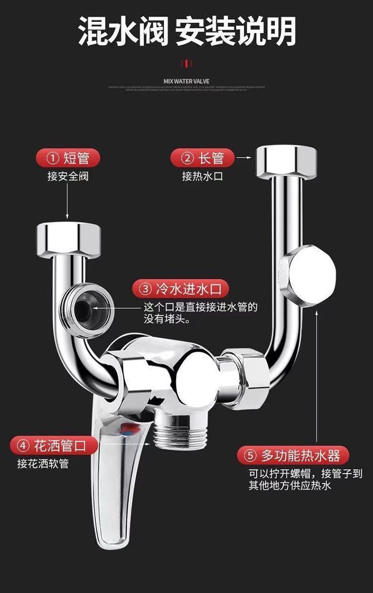 Válvula Mezcladora para Calentador de Agua Eléctrico, Accesorios para Grifo de Agua Fría y Caliente, Interruptor Mezclador Universal para Ducha, Control de Temperatura de Válvula en Forma de U