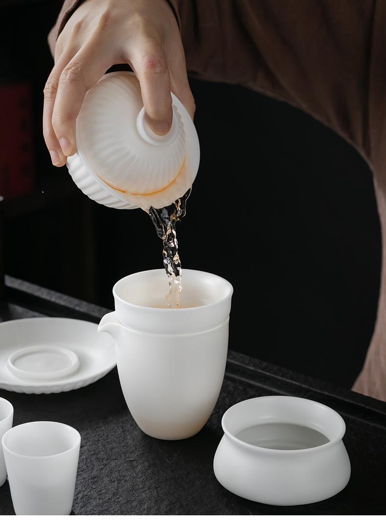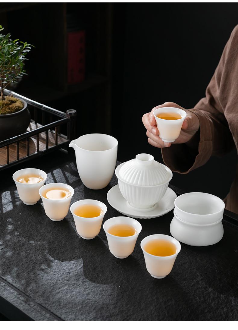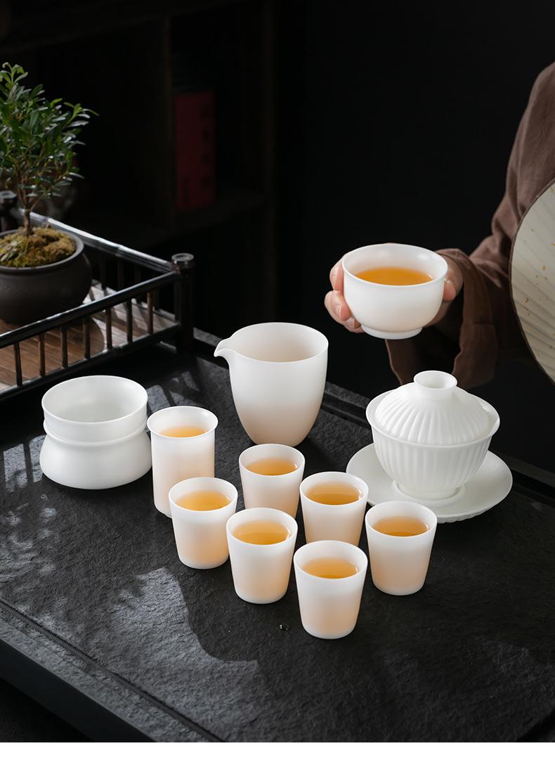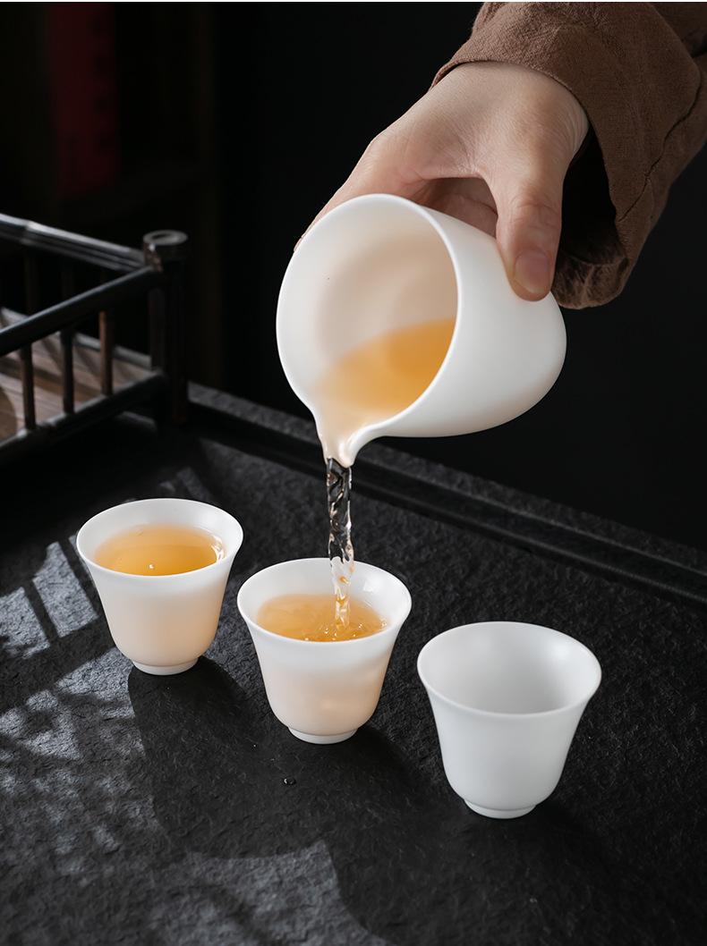 Nueva taza de grasa de oveja quemada estilo chino de semilla de hielo, jade blanco porcelana grasa, juego de té de cerámica para ceremonia del té Kung Fu, mar de té Fen té, uniforme de té vacante