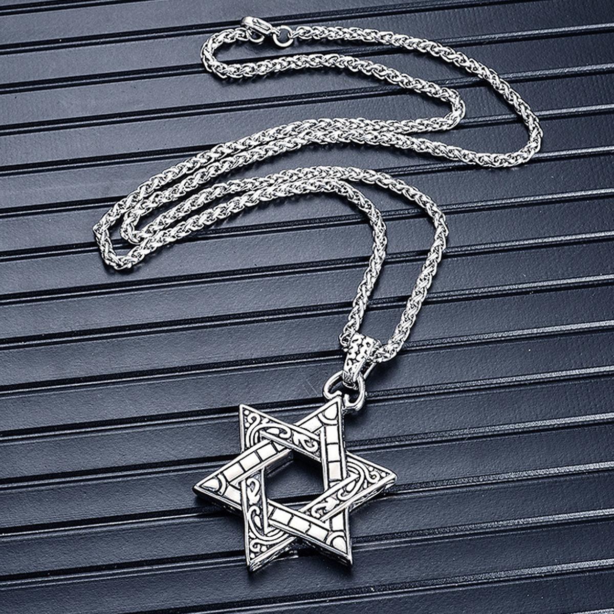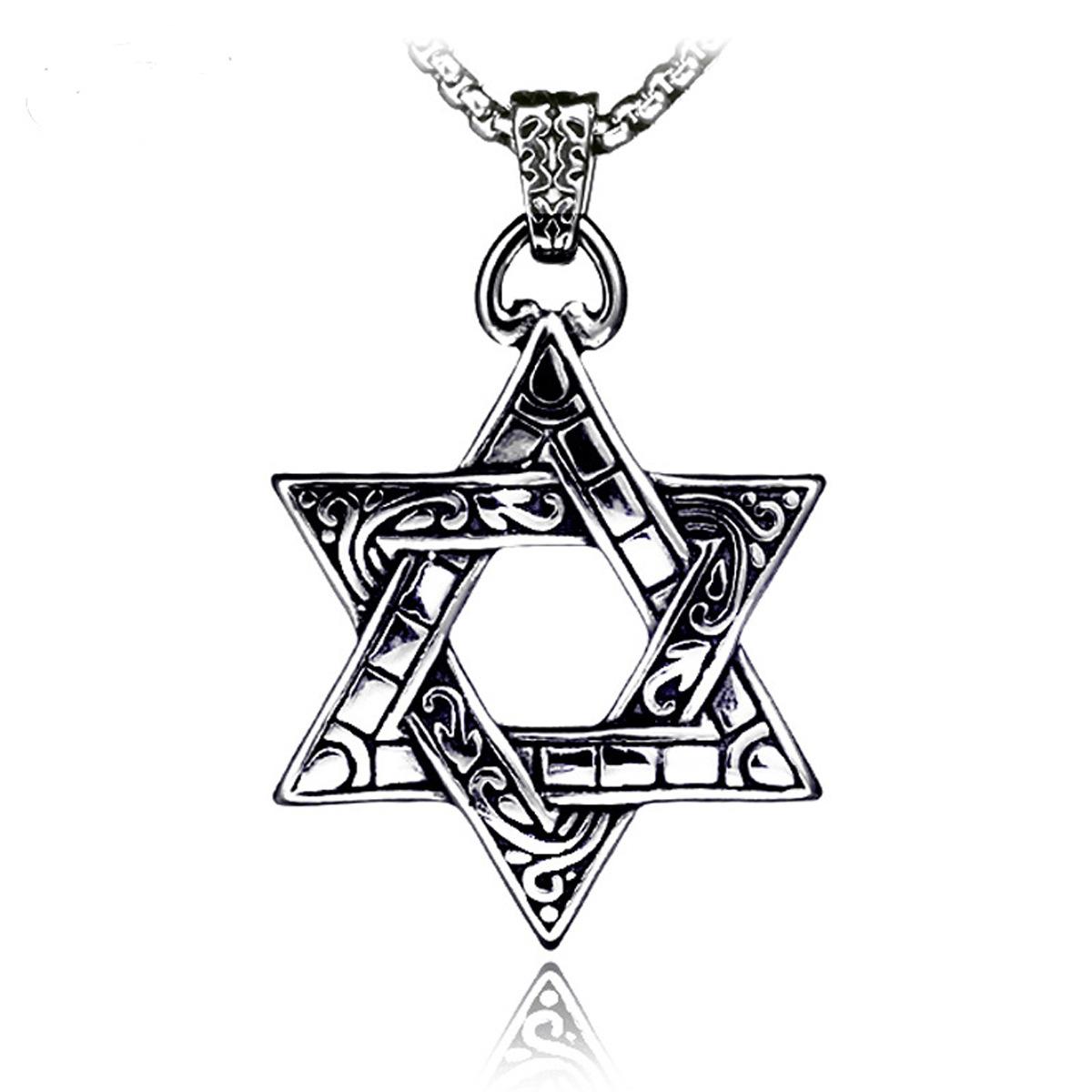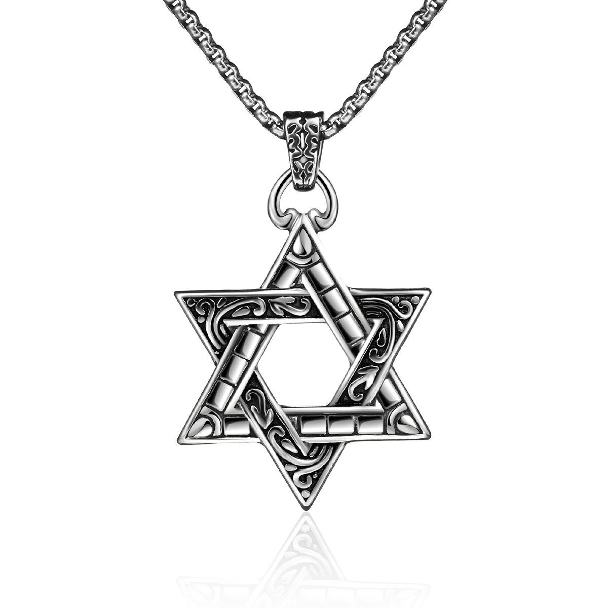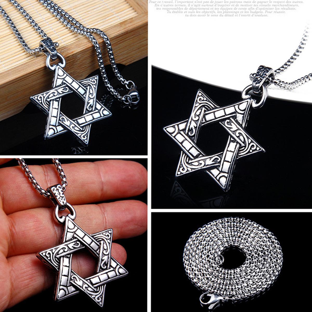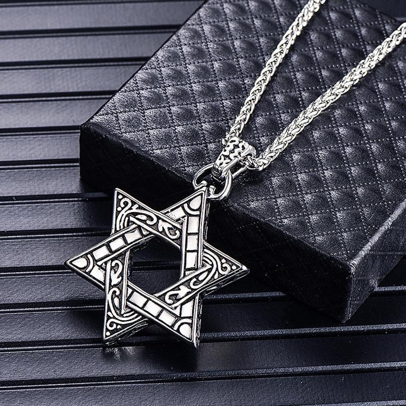 Collar de hip hop con estrella de seis puntas de acero inoxidable transfronterizo, colgante para niños, colgante hipster con personalidad, cadena de suéter que combina con todo de marca de moda