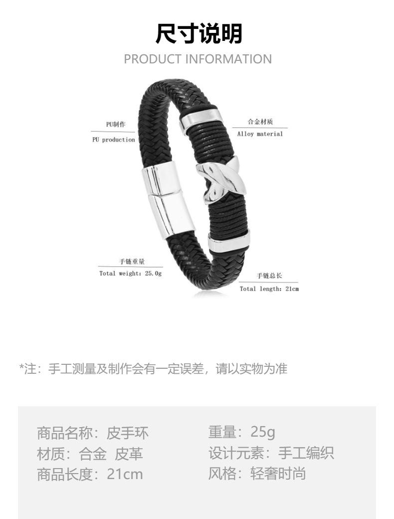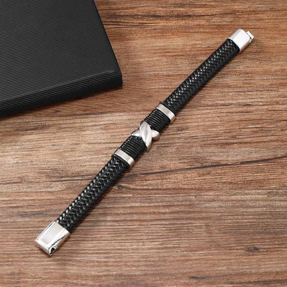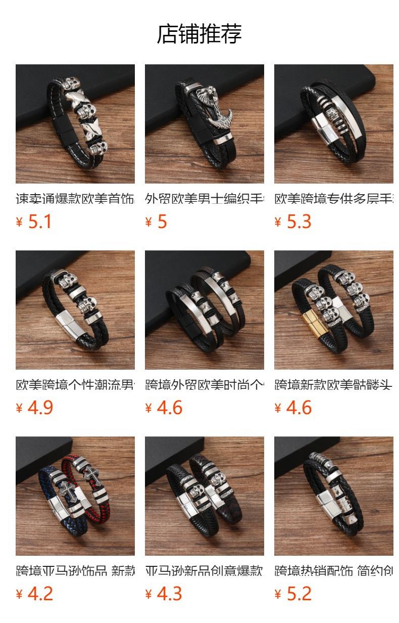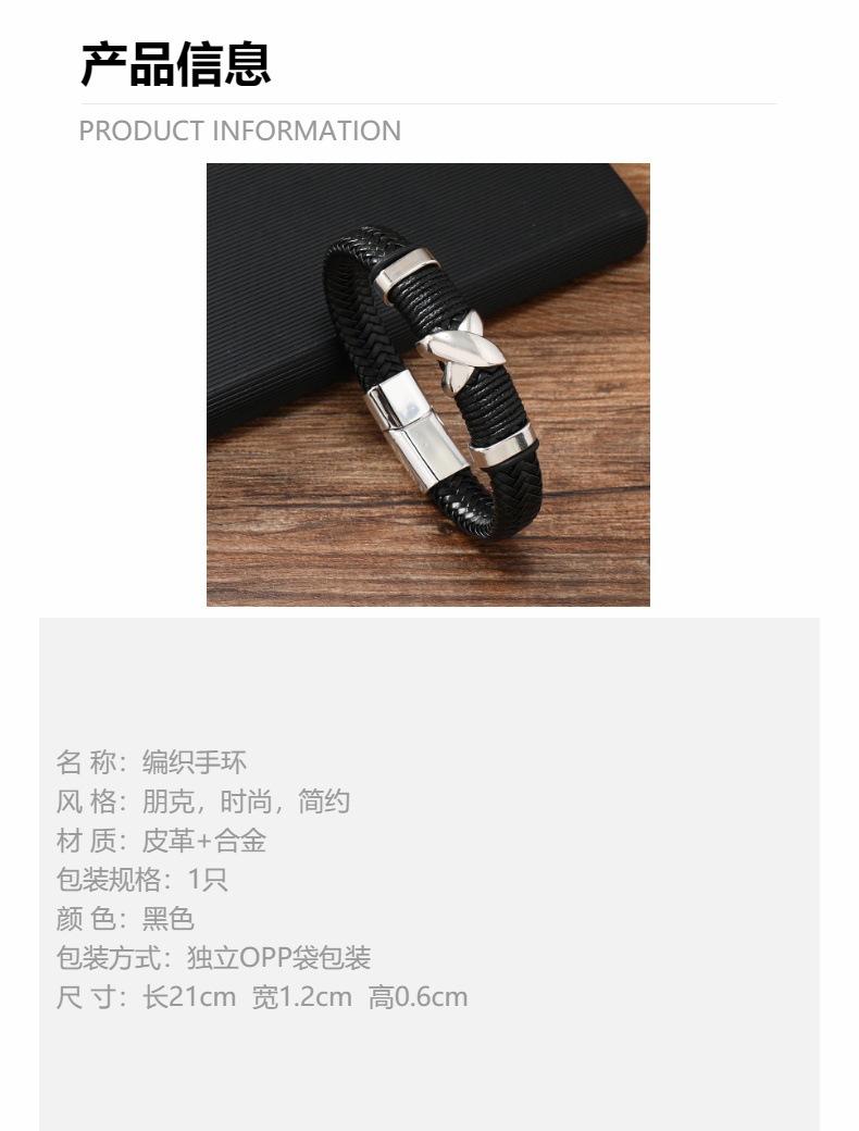 Pulsera punk personalizada tejida a mano de comercio electrónico transfronterizo Pulsera de cuero simple para hombres Accesorios de aleación Pulsera de cuero