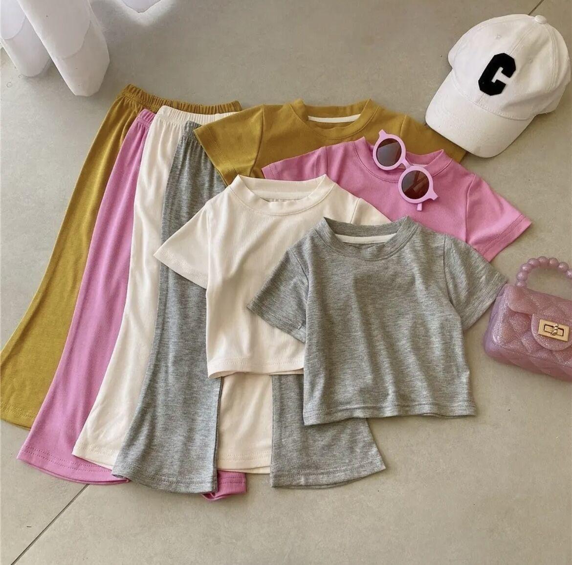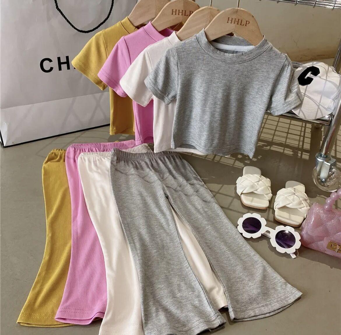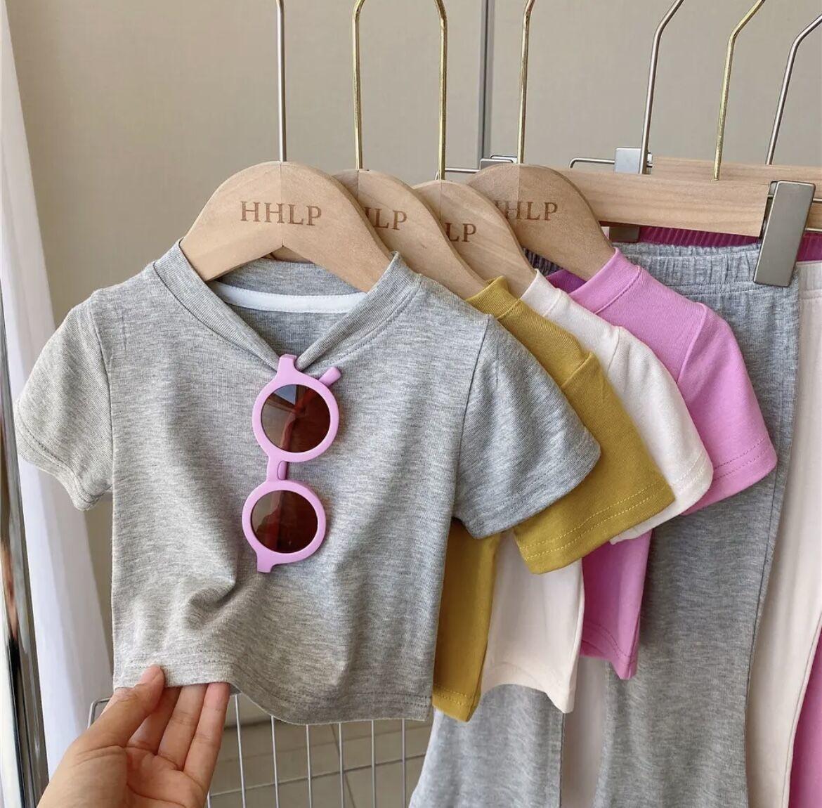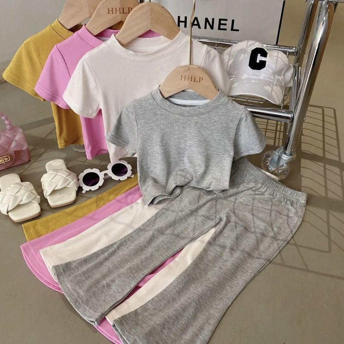 Traje de verano para niñas Bebé Elegante Infantil Personalizado Moderno Marca Coreana Color Sólido Modal Camiseta de Manga Corta Pantalones Acampanados