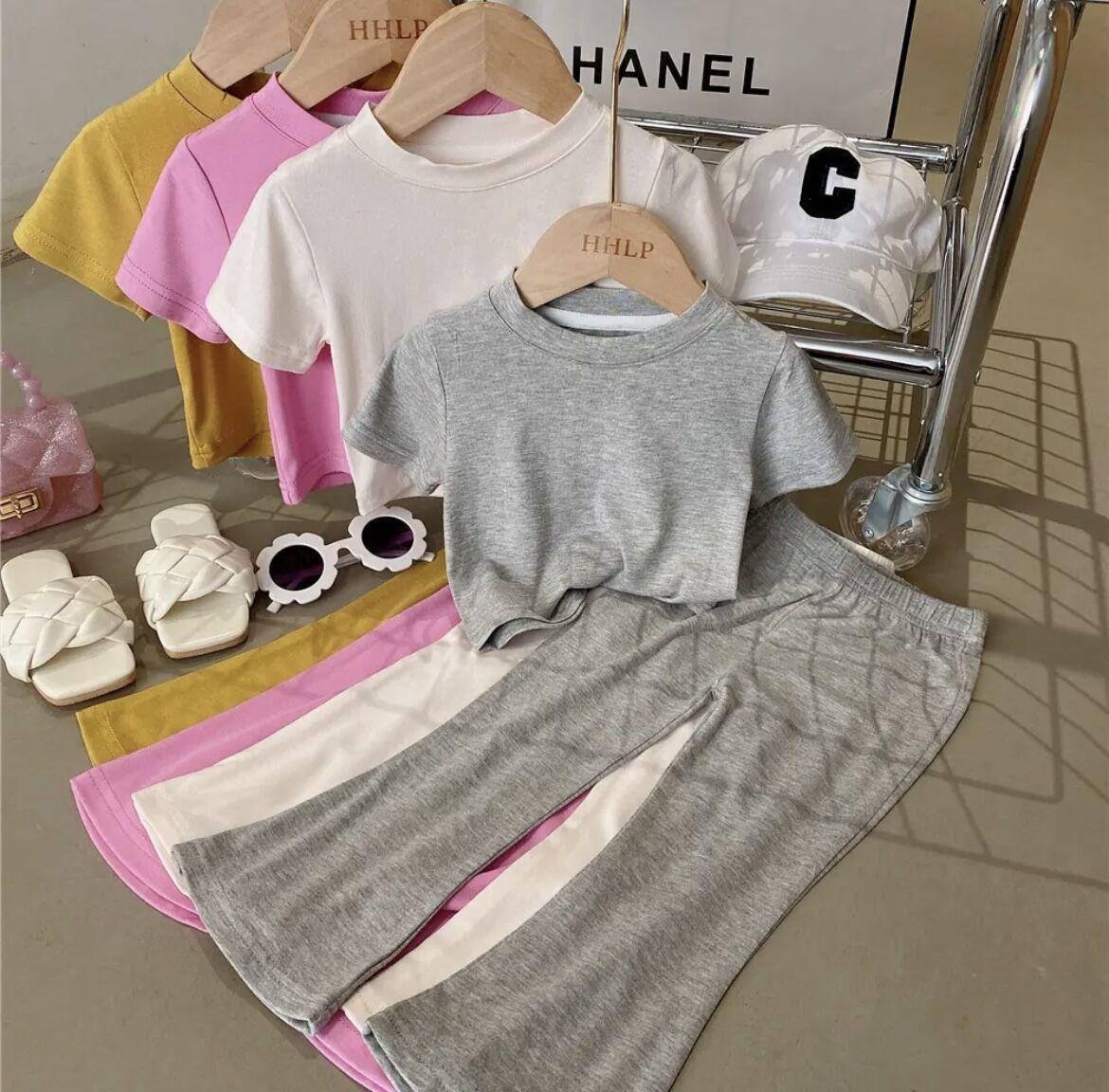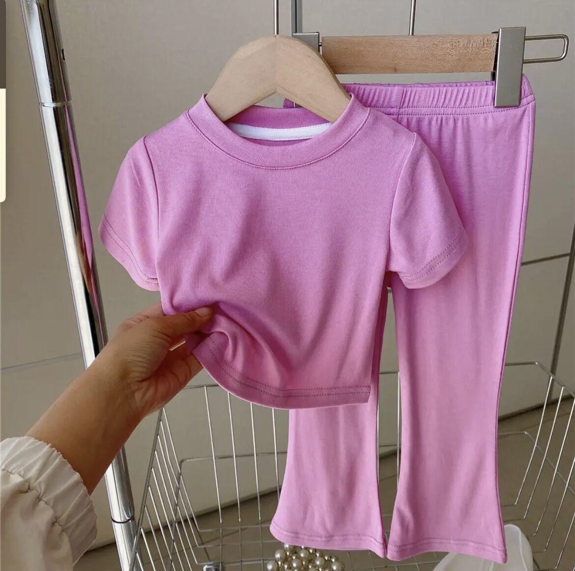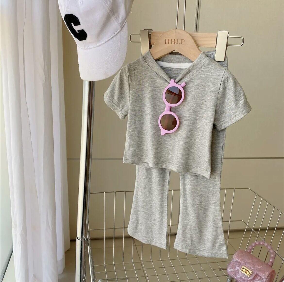 Traje de verano para niñas Bebé Elegante Infantil Personalizado Moderno Marca Coreana Color Sólido Modal Camiseta de Manga Corta Pantalones Acampanados
