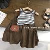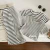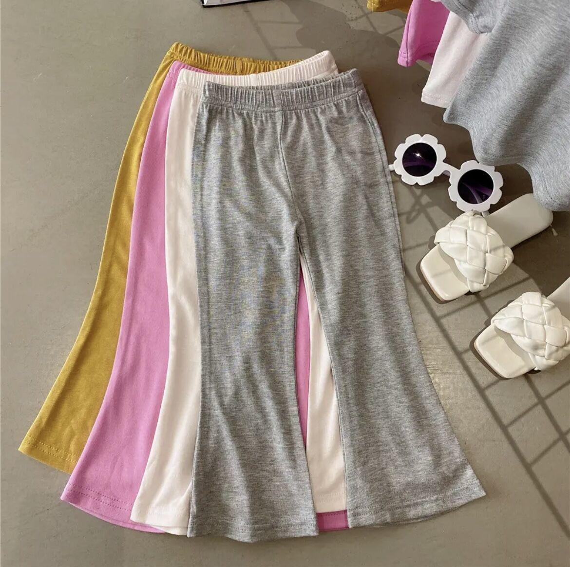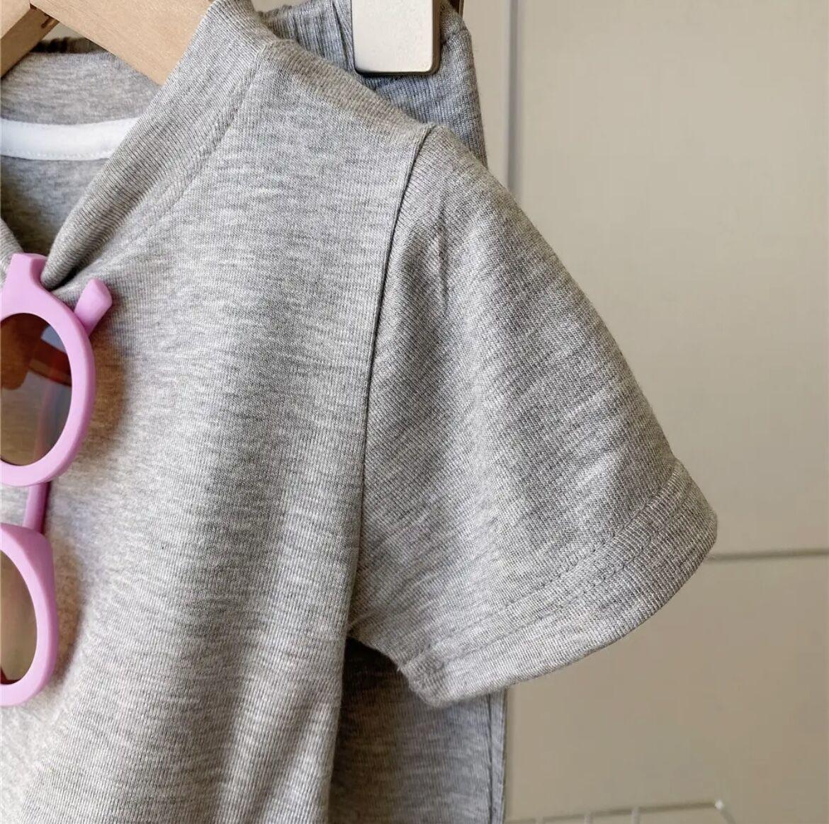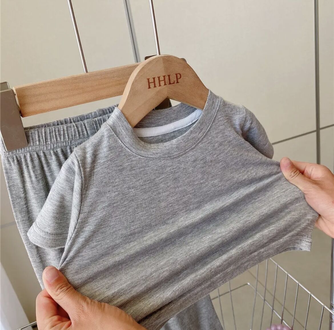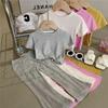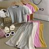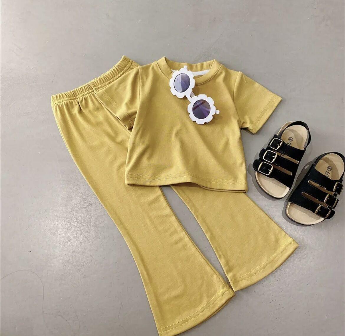 Traje de verano para niñas Bebé Elegante Infantil Personalizado Moderno Marca Coreana Color Sólido Modal Camiseta de Manga Corta Pantalones Acampanados