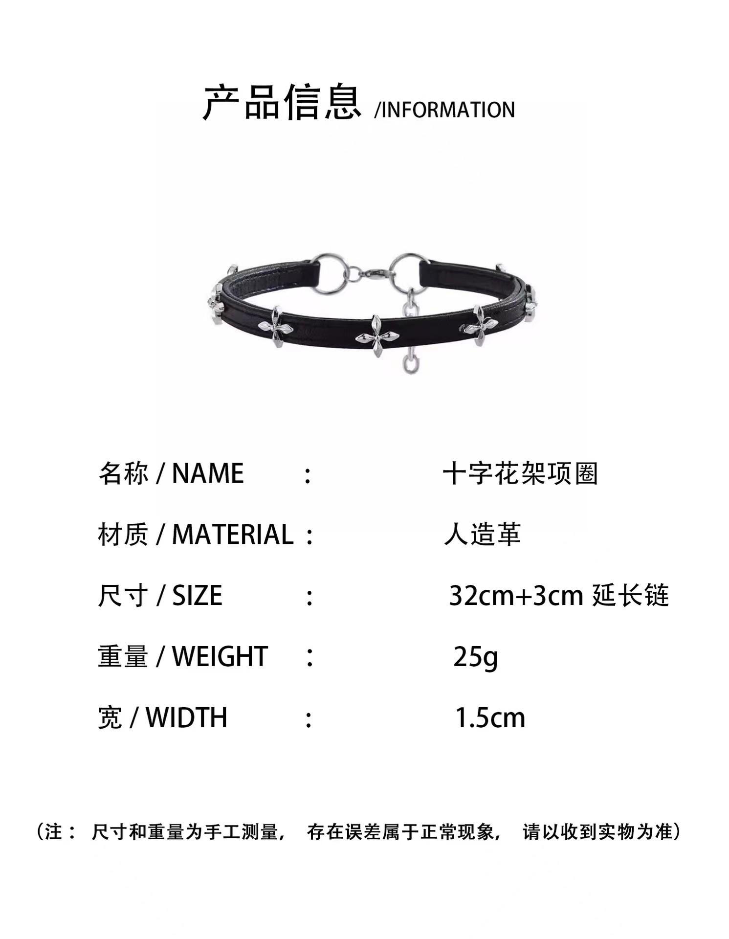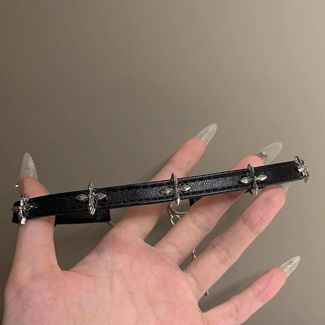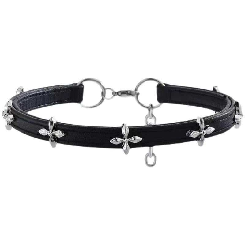 Gargantilla de cuero estilo Diablo Vintage Niche con diseño de cruz y flores, estilo elegante y moderno, de alta gama, para mujer.