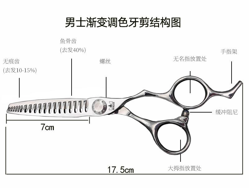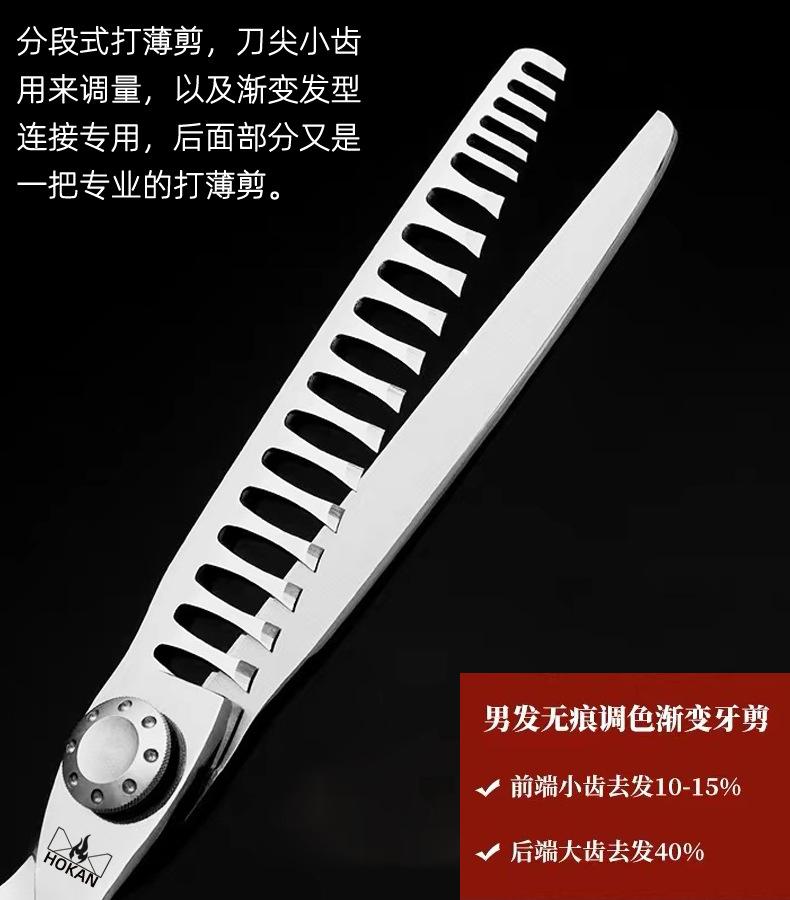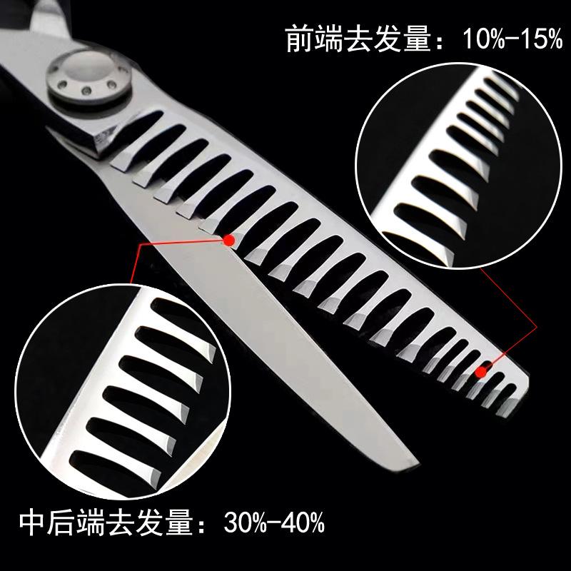 La parte delantera tiene dientes finos y puede eliminar el 10-15% del cabello sin dejar ninguna marca, mientras que la parte trasera tiene dientes anchos y puede eliminar alrededor del 30% del cabello sin dejar ninguna marca. |