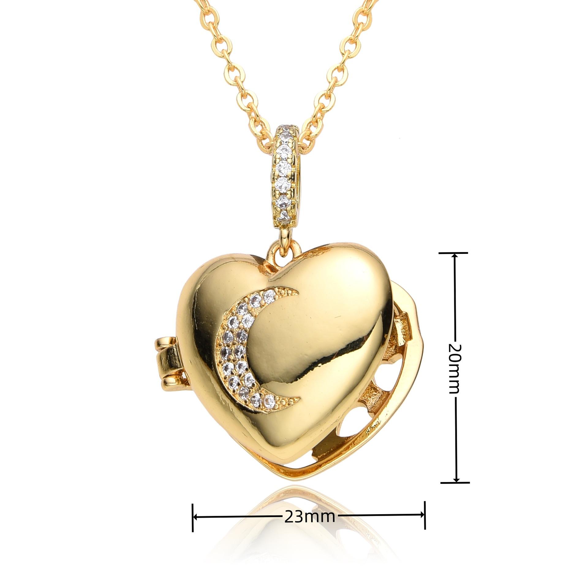 Álbum de fotos con forma de corazón de amor transfronterizo europeo y americano, colgante con microincrustaciones de estrella de cinco puntas y luna de amor, collar abierto y cerrado chapado en oro y cobre