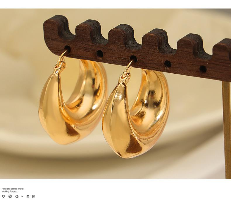 Pendientes de moda transfronterizos con personalidad, temperamento, acero de titanio chapado en oro, en forma de U, diseño geométrico, joyería suave para mujer