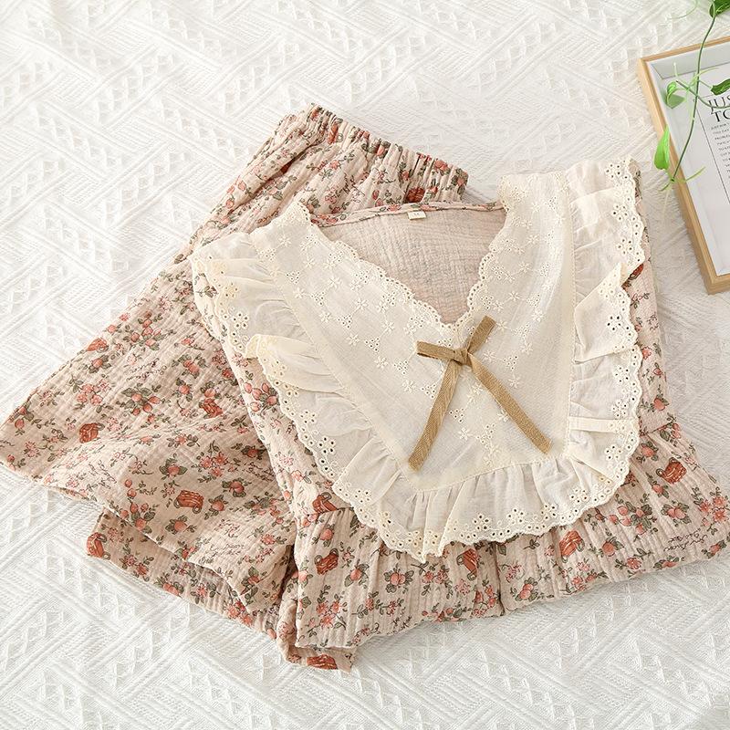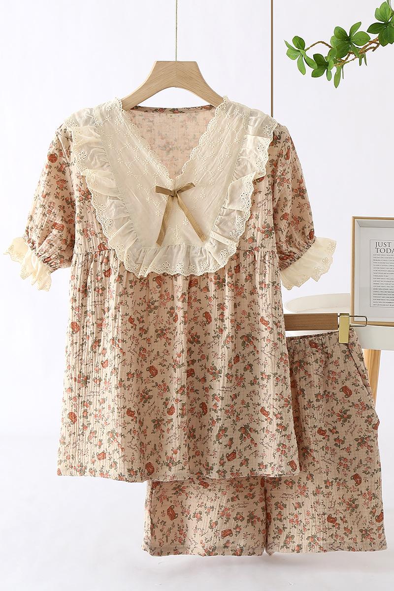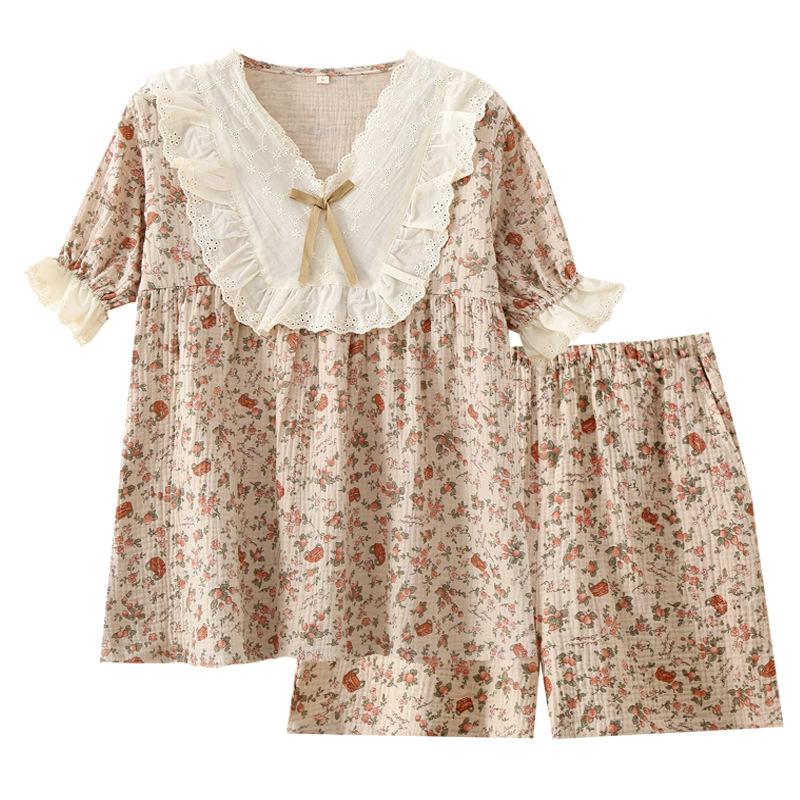Pijama de verano de manga corta para mujer, de algodón puro, con cuello redondo, estilo retro, fino, de manga corta, holgado, para el hogar