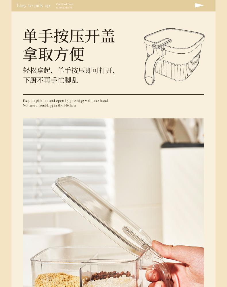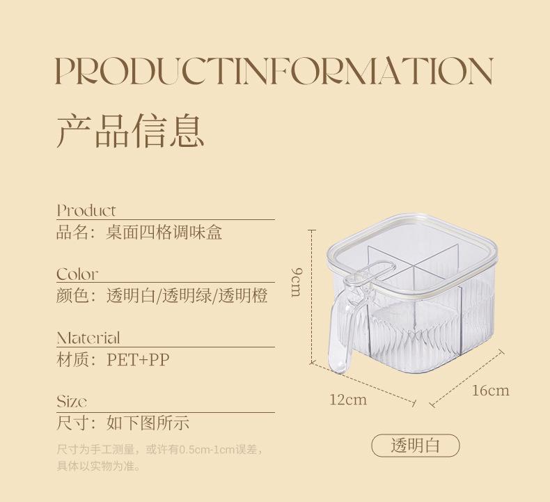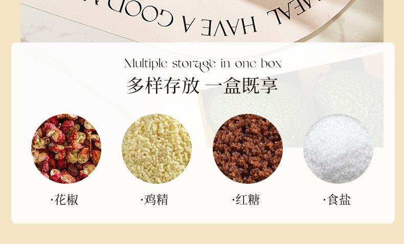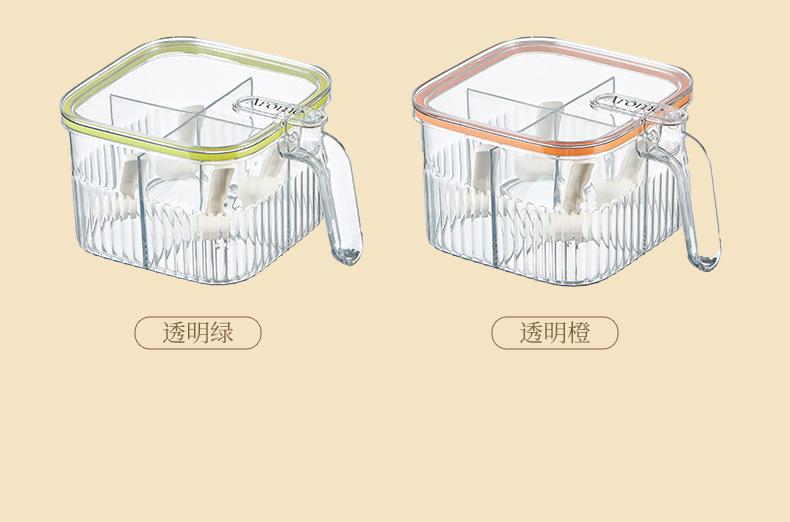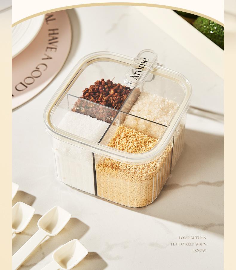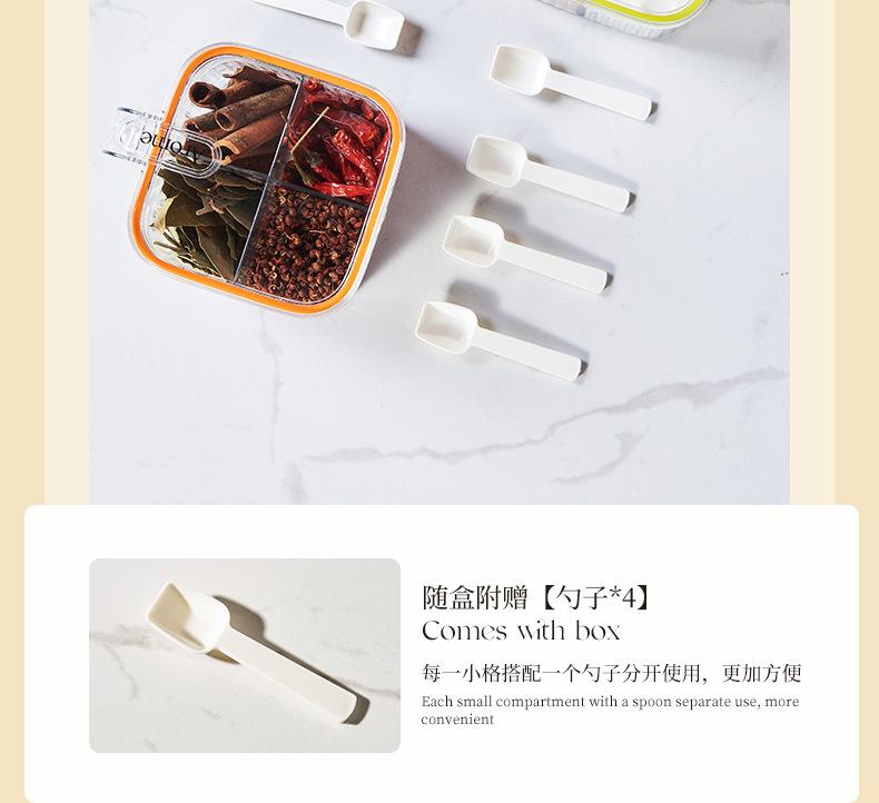 Compra Caja de condimentos tipo prensa de cocina sellada a prueba de humedad con cuchara, caja de condimentos de glutamato monosódico y sal, tarro de condimentos de cuatro compartimentos al por mayor en Joom.pro