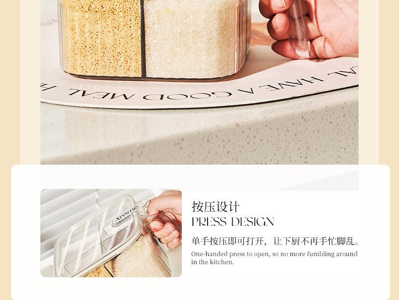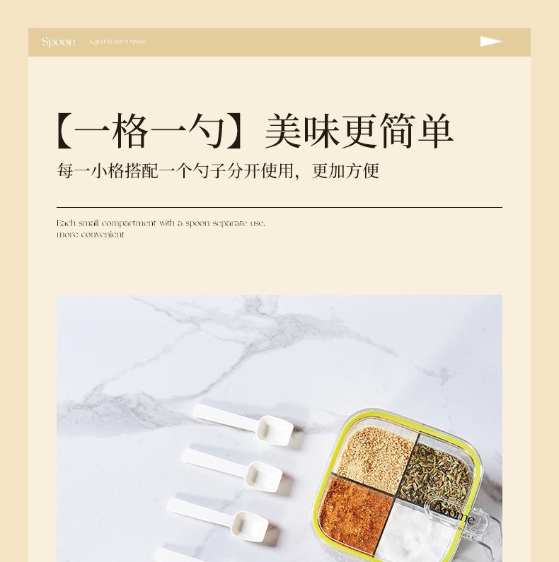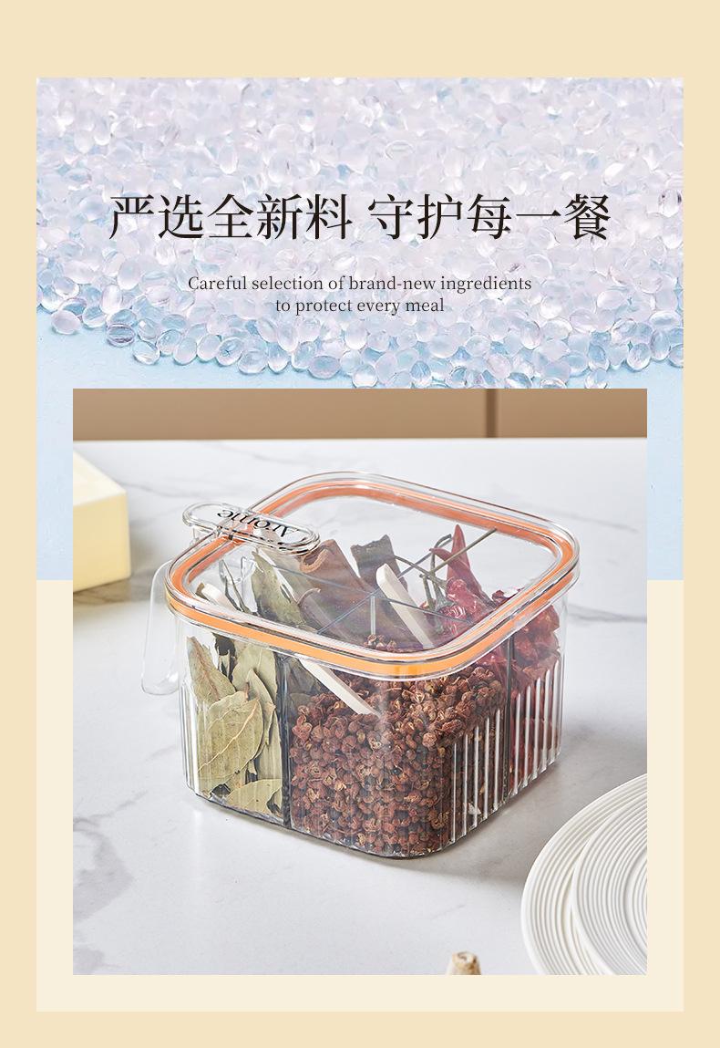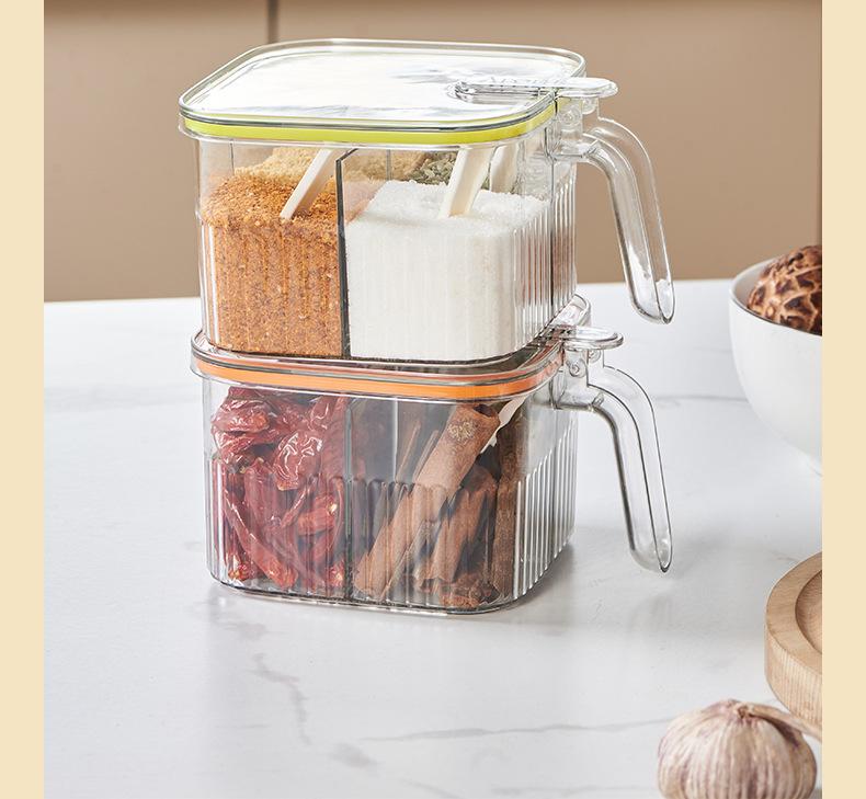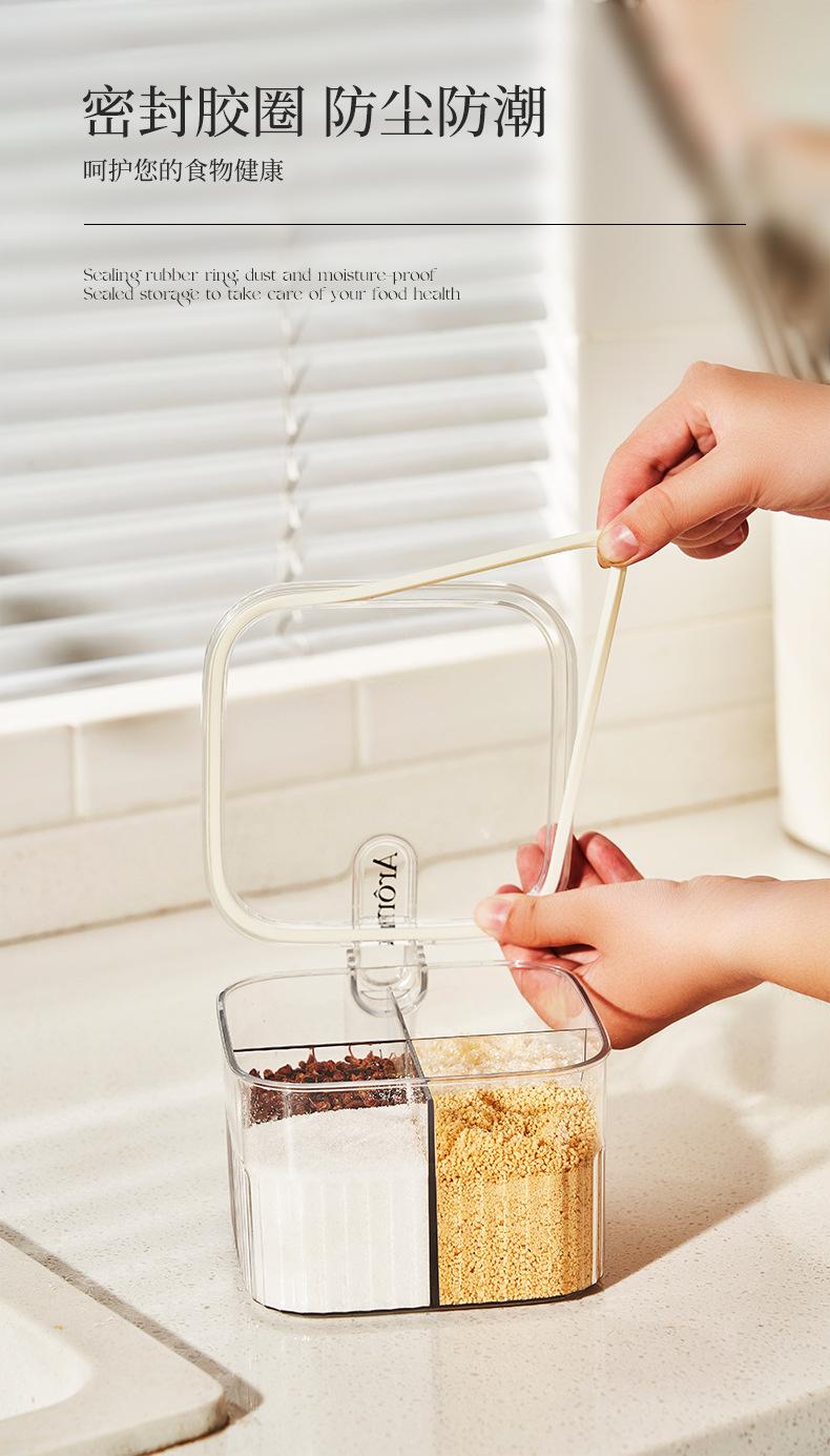 Compra Caja de condimentos tipo prensa de cocina sellada a prueba de humedad con cuchara, caja de condimentos de glutamato monosódico y sal, tarro de condimentos de cuatro compartimentos al por mayor en Joom.pro
