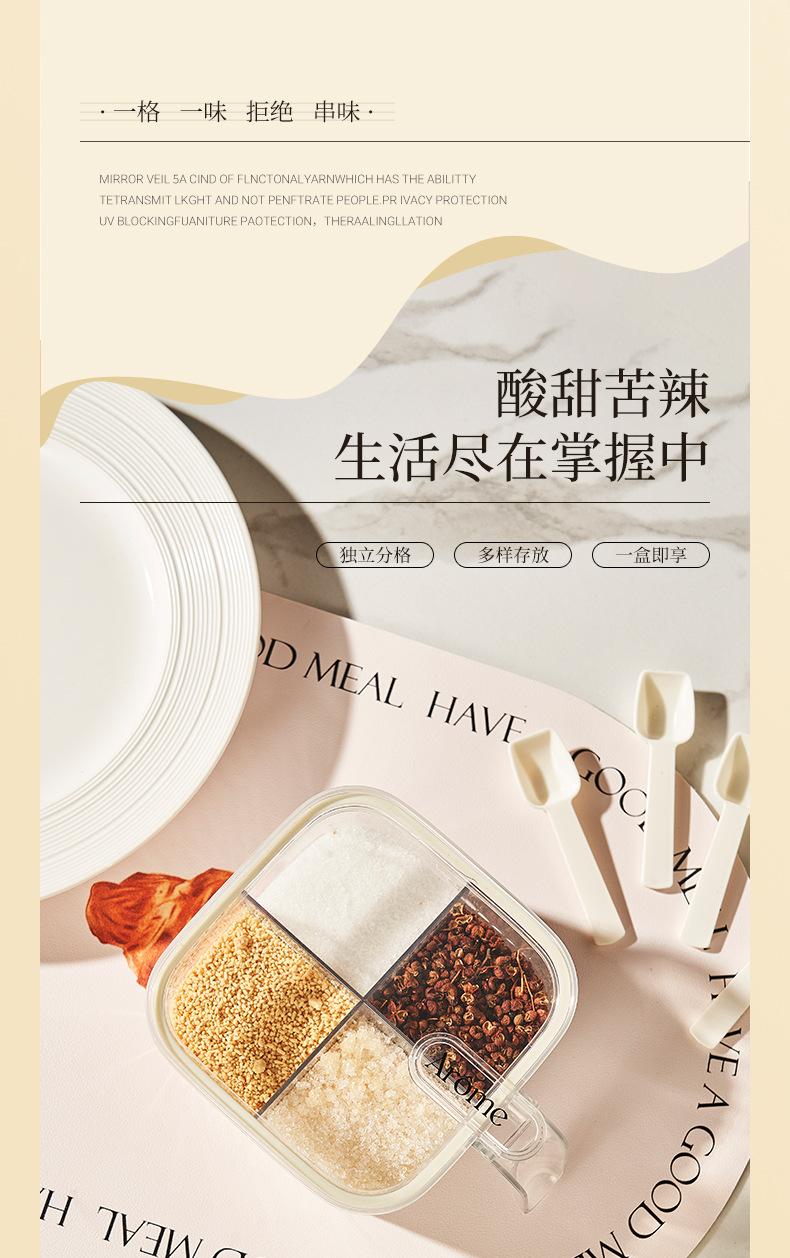 Caja de condimentos tipo prensa de cocina sellada a prueba de humedad con cuchara, caja de condimentos de glutamato monosódico y sal, tarro de condimentos de cuatro compartimentos