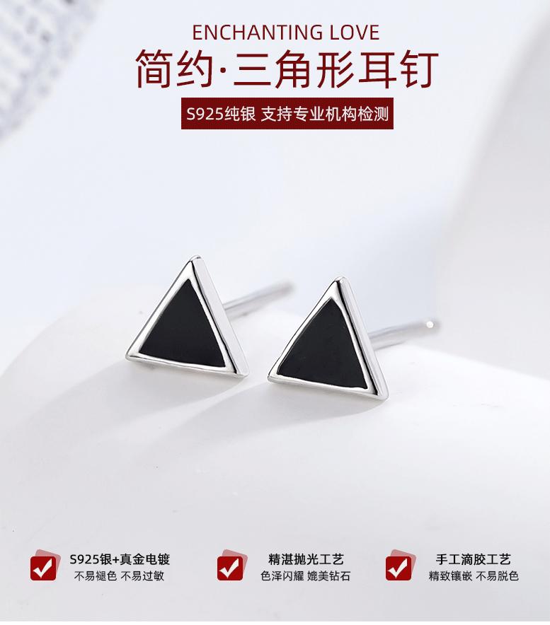 Pendientes triangulares de plata de ley s925 para niñas, modernos, ahuecados, dorados en blanco, geométricos, sencillos, para parejas, venta al por mayor