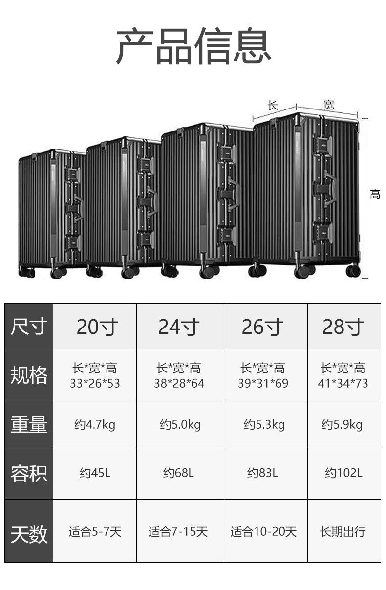 Maleta con Marco de Aluminio Maleta con Ruedas de Gran Capacidad para Hombre Caja con Contraseña de PC 28 pulgadas Maleta de Aspecto Elegante para Mujer 30 pulgadas Maleta de Cabina